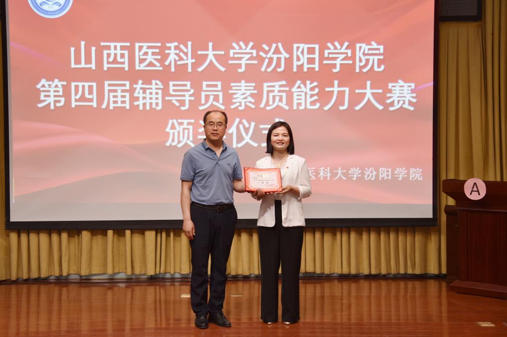 经过激烈角逐,冯佳菏获得一等奖,李晨、张楠、陈美妍获得二等奖,王鑫、姚晓媛、赵玮、李小龙、阎艳萍获得三等奖,张冠蓉、双内青、吕维倩、李丹、赵艳、龚宪芳、武明丹获得优秀奖,冯佳菏、姚晓媛、李晨分别获得基础理论考核、案例研讨、谈心谈话环节单项奖,基础医学部、护理学系、临床医学系、医学检验系、眼视光学系、卫生信息管理系获得优秀组织奖。与会领导为获奖辅导员和获奖集体颁奖。