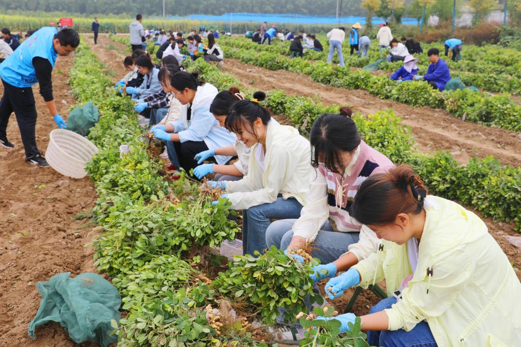 随后,同学们来到田间,开始了摘花生的劳动实践。在研究所老师们的指导下,同学们以班级为单位展开比赛,大家齐心协力,互相帮助,共同完成任务,很好地发扬了团队协作精神。劳动中,同学们脸上洋溢着欢快的笑容,分享着收获的喜悦。