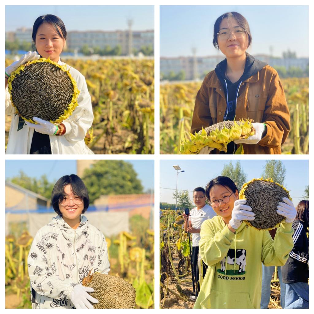 成熟的向日葵孕育着秋日的芬芳。在老师们的采摘指导下,同学们分工明确,带着满腔的热情与期待穿梭在向日葵园地的每个角落。大家集思广益、齐心协力、认真劳作,边收获、边交流。实践基地里一派丰收的景象,展现出汾院学子团结协作、吃苦耐劳、热爱劳动、尊重劳动的精神风貌,得到了农科所老师们的表扬和称赞。