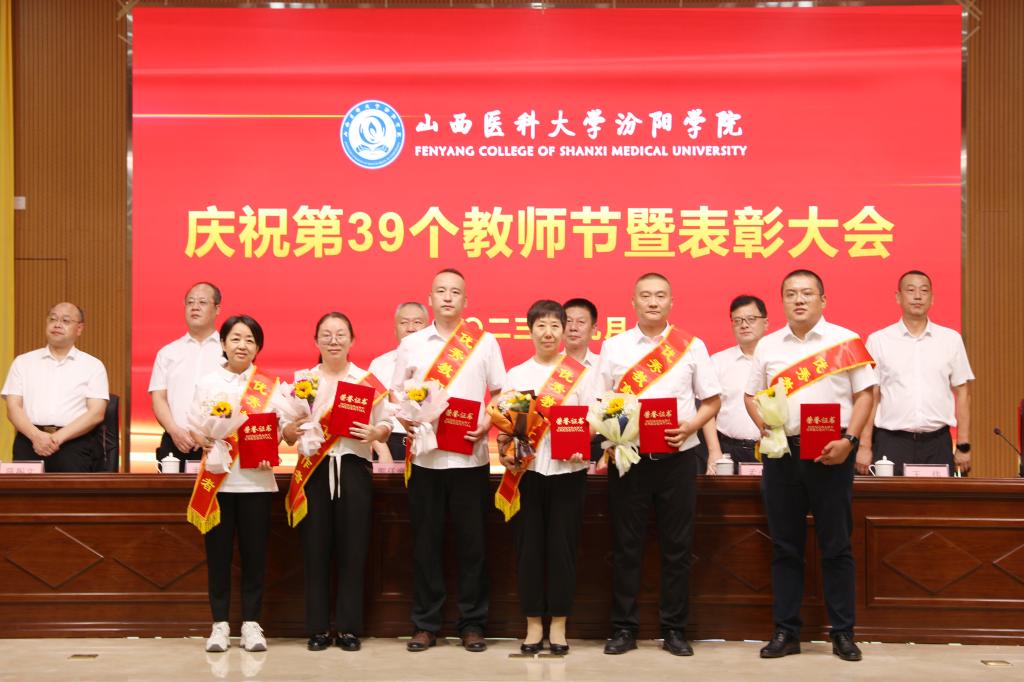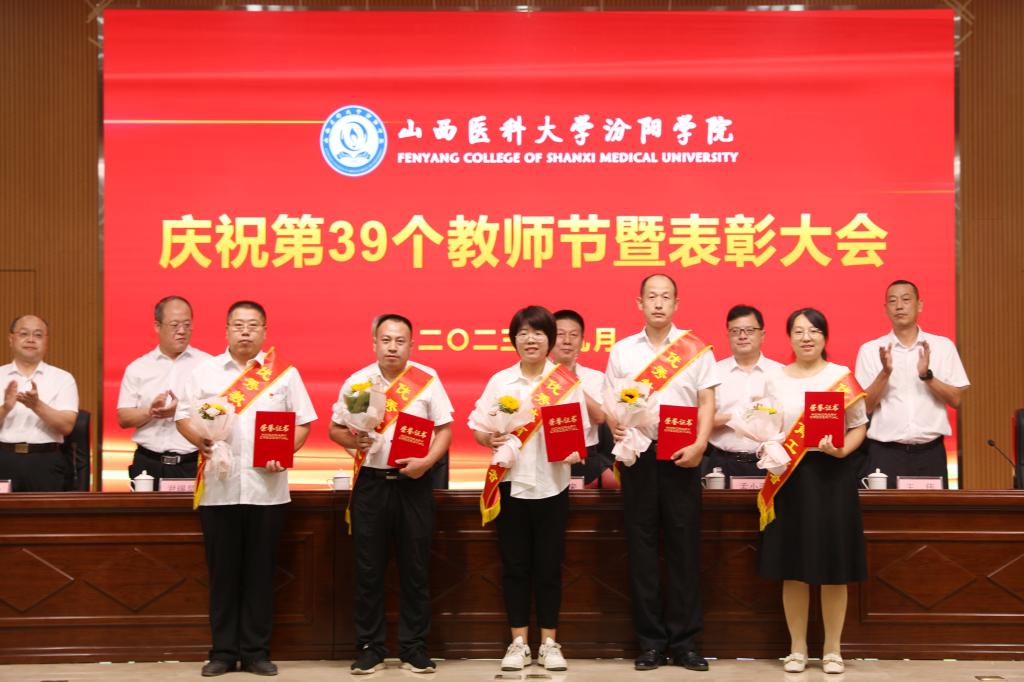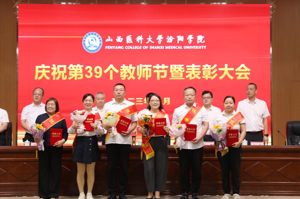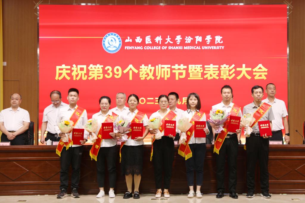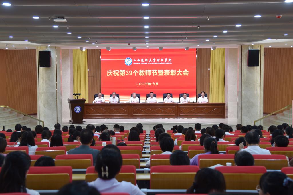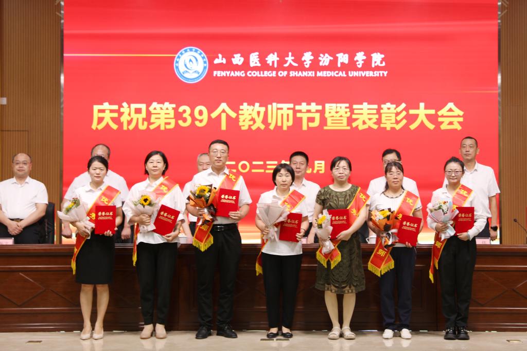9月7日下午,在第39个教师节来临之际,beat365在图书馆隆重举行庆祝第39个教师节暨表彰大会。大会以“躬耕教坛,强国有我”为主题,表彰过去一年在教育教学工作中表现突出的先进集体和优秀个人。党委书记闫敬来,党委副书记、院长孟小平,山西省汾阳医院党委书记郭任维,党委副书记王伟,党委委员、纪委书记尹锡昊,党委委员、副院长陈振文和李荣江及学校中层干部、副高职称及以上人员、教研室(实验室)主任、新入职教职工、获奖人员及获奖集体代表参加了会议。党委委员、副院长陈振文主持了会议。