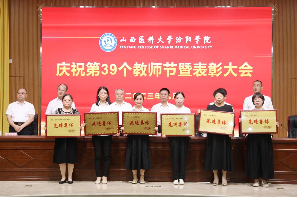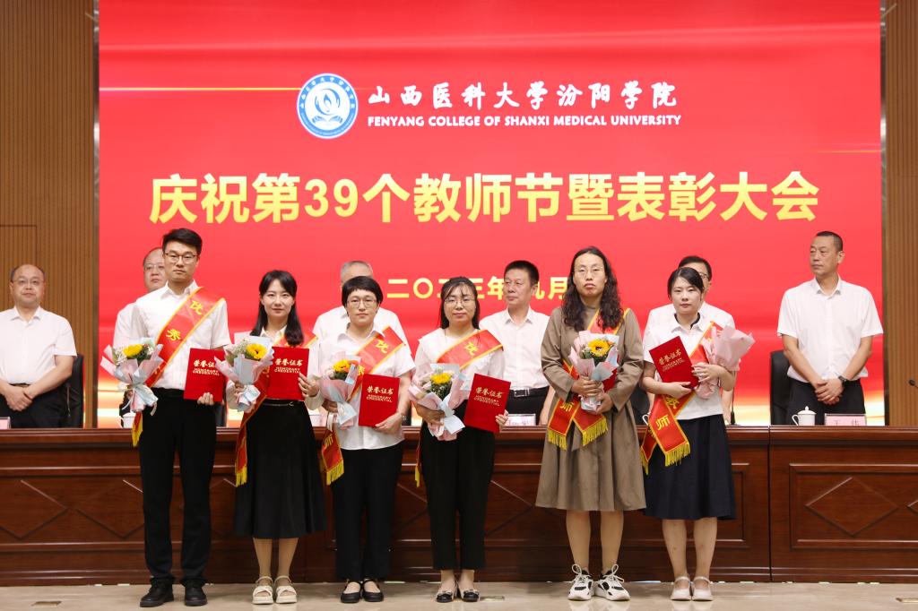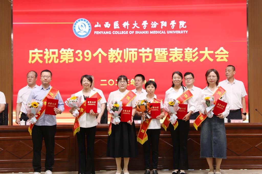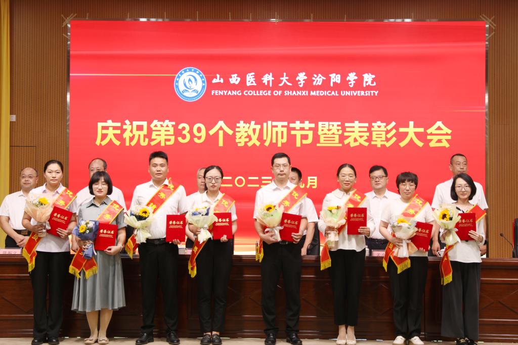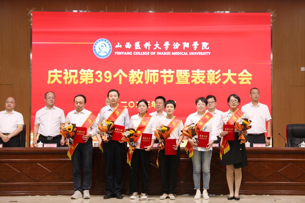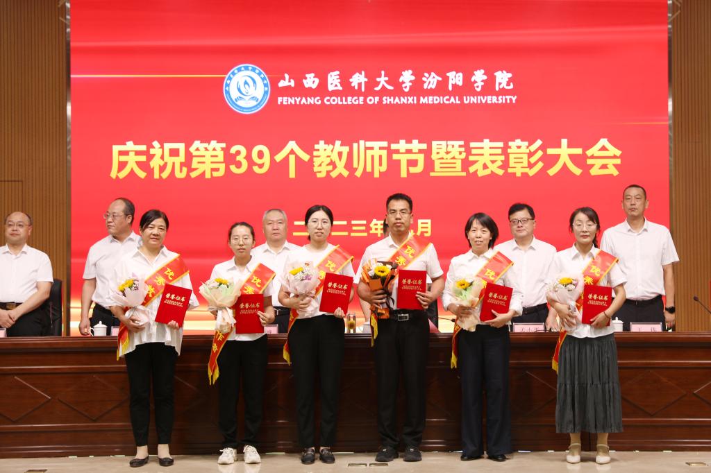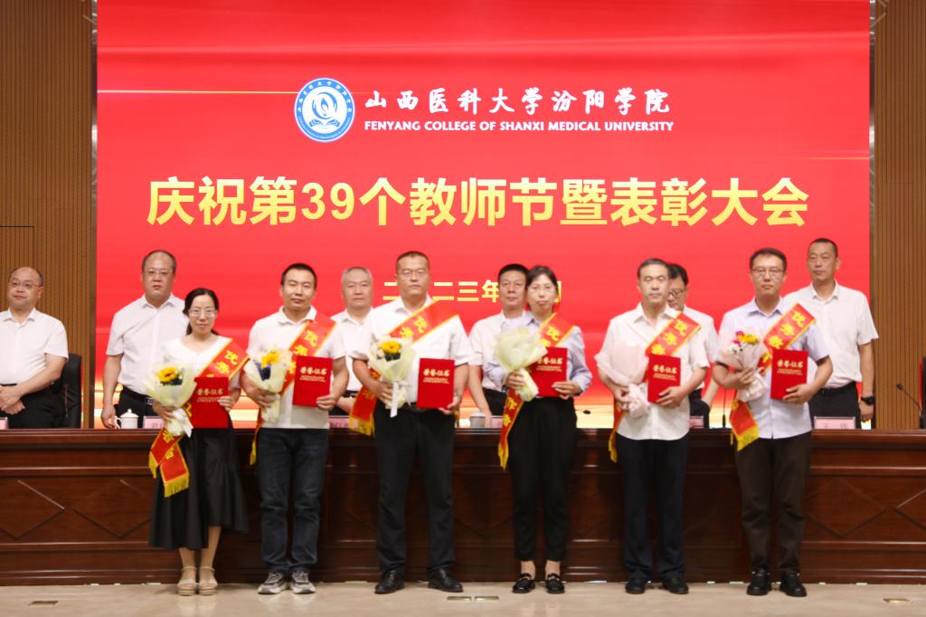 9月7日下午,在第39个教师节来临之际,beat365在图书馆隆重举行庆祝第39个教师节暨表彰大会。大会以“躬耕教坛,强国有我”为主题,表彰过去一年在教育教学工作中表现突出的先进集体和优秀个人。党委书记闫敬来,党委副书记、院长孟小平,山西省汾阳医院党委书记郭任维,党委副书记王伟,党委委员、纪委书记尹锡昊,党委委员、副院长陈振文和李荣江及学校中层干部、副高职称及以上人员、教研室(实验室)主任、新入职教职工、获奖人员及获奖集体代表参加了会议。党委委员、副院长陈振文主持了会议。