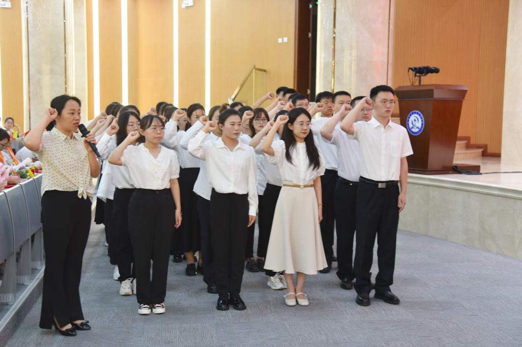 党委委员、副院长陈振文介绍了新入职的31名教师,新入职教师代表刘婷丽博士作了表态发言,教师发展中心朱婷婷老师带领全体新入职教师进行了宣誓。