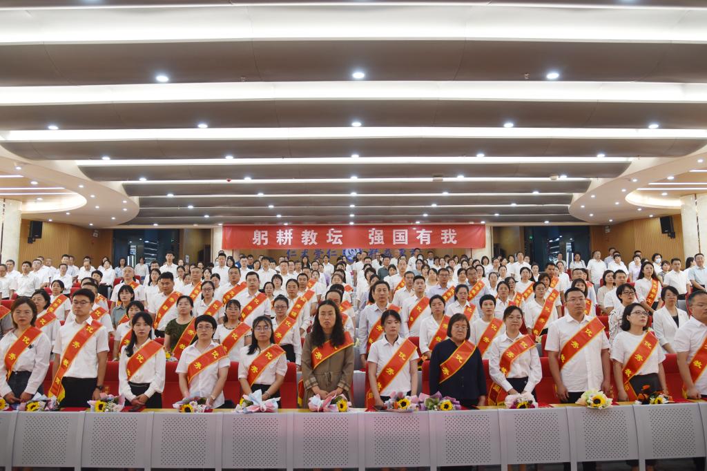 党委副书记、院长孟小平讲话。孟院长代表学校党政,向为学校高质量发展呕心沥血、恪尽职守的全体教职员工表示亲切的慰问!向为学校建设做出贡献的全体离退休老教师、老同志表示崇高的敬意!向长期以来关注学校发展、支持学校工作的社会各界和广大教职工家属表示衷心的感谢!向受表彰的优秀集体和个人表示热烈的祝贺!对新入职教师表示热烈的欢迎!他充分肯定了一年来beat365在教育教学、科学研究、文明创建等方面取得的优异成绩,并向全校师生和广大教育工作者提出三点希望:一是躬耕教坛、心怀大志,坚定为党育人的理想信念。要深入学习领会习近平总书记关于教育的重要论述和党的二十大精神,切实增强“四个意识”、坚定“四个自信”、做到“两个维护”。坚定理想信念,忠诚于党的教育事业,全面贯彻党的教育方针,不忘立德树人初心、牢记为党育人、为国育才使命,全心全意做好教育教学工作。二是培根铸魂、以德沁人,担当立德树人的教育责任。要不断塑造高尚的道德情操,发挥师者的人格魅力,秉持正确的人生观和价值观,以身示范,不断给学生的心灵埋下真善美的种子,引导学生扣好人生的第一粒扣子,当好学生的“四个引路人”。三是博学通达、勤学善教,树立广纳知识的良好风尚。要拥有海纳百川的胸怀,源源不断地汲取新知识、新力量。要用扎实的知识功底、过硬的教学能力、勤勉的教学态度、科学的教学方法,满足新时代学生的教学需求,给学生专业的指导、发展的支撑。孟院长希望全体教师要争做“四有”好老师,成为新时代“大先生”,在提升学校综合实力,推动学校高质量发展道路上再创佳绩!