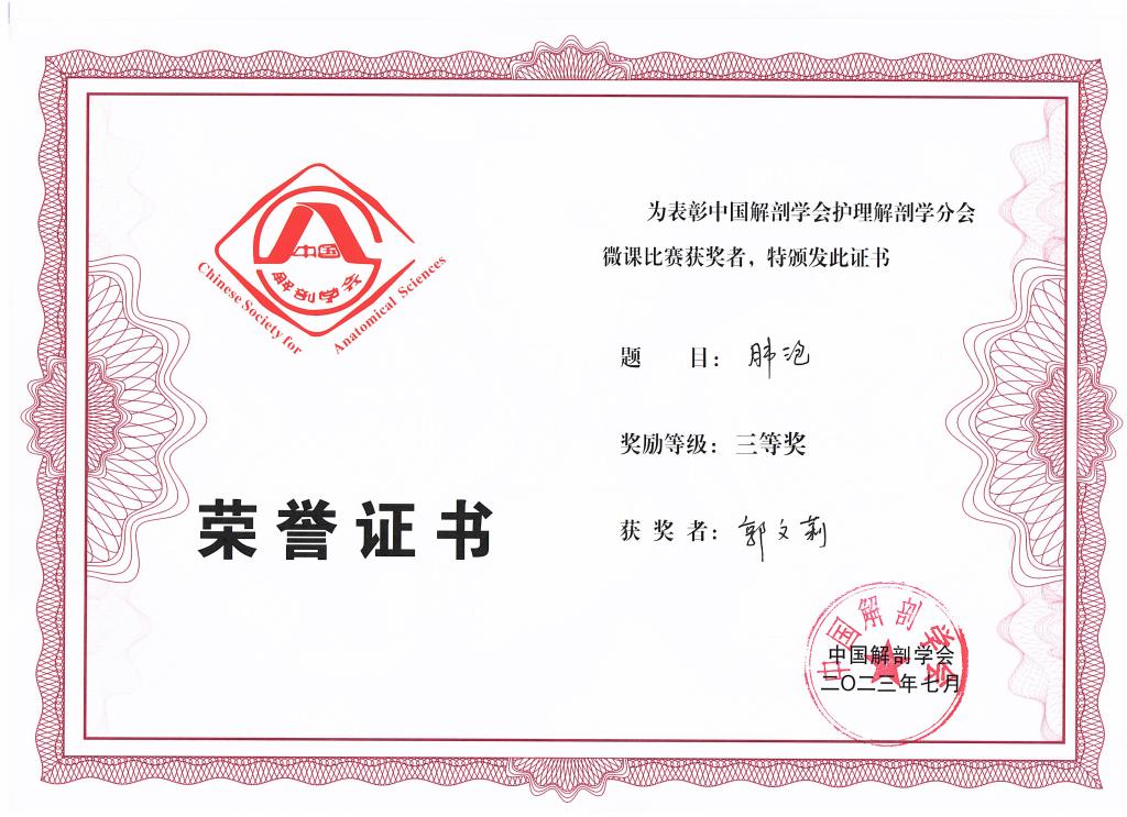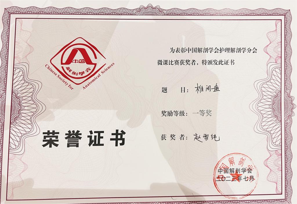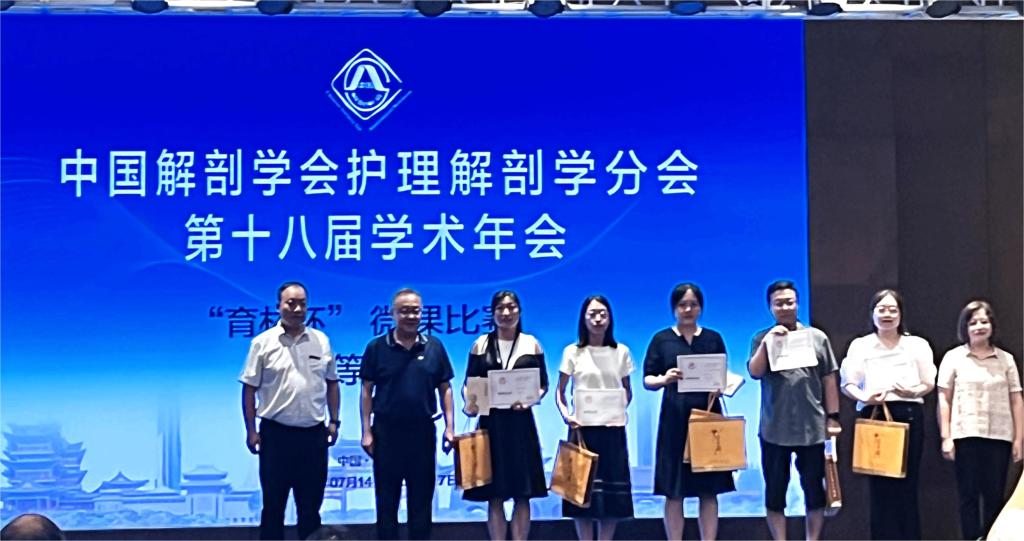 7月14日至17日,由中国解剖学会护理解剖学分会主办,南京大学医学院承办,江苏省解剖学会、广东省解剖学会、《解剖学研究》杂志社共同协办的第18届护理解剖学学术年会在南京大学国际会议中心召开。beat365基础医学部解剖教研室赵雪纯老师、组织学与胚胎学教研室郭文莉老师在微课比赛中分别获得一等奖、三等奖,解剖教研室张楠老师指导1020班祁可同学、王瑞芳老师指导620班冯子璇同学的绘图作品分别获得绘图比赛一等奖和三等奖,为beat365争得了荣誉。