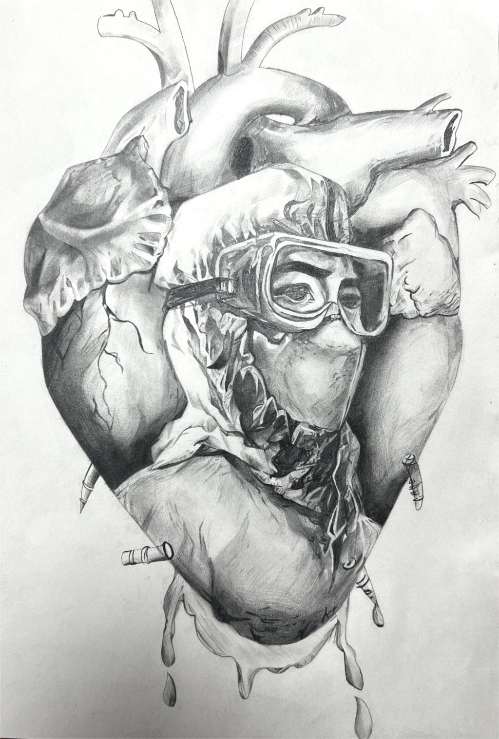 beat365基础医学部解剖教研室王瑞芳老师指导620班冯子璇同学的绘图作品《医者仁心》