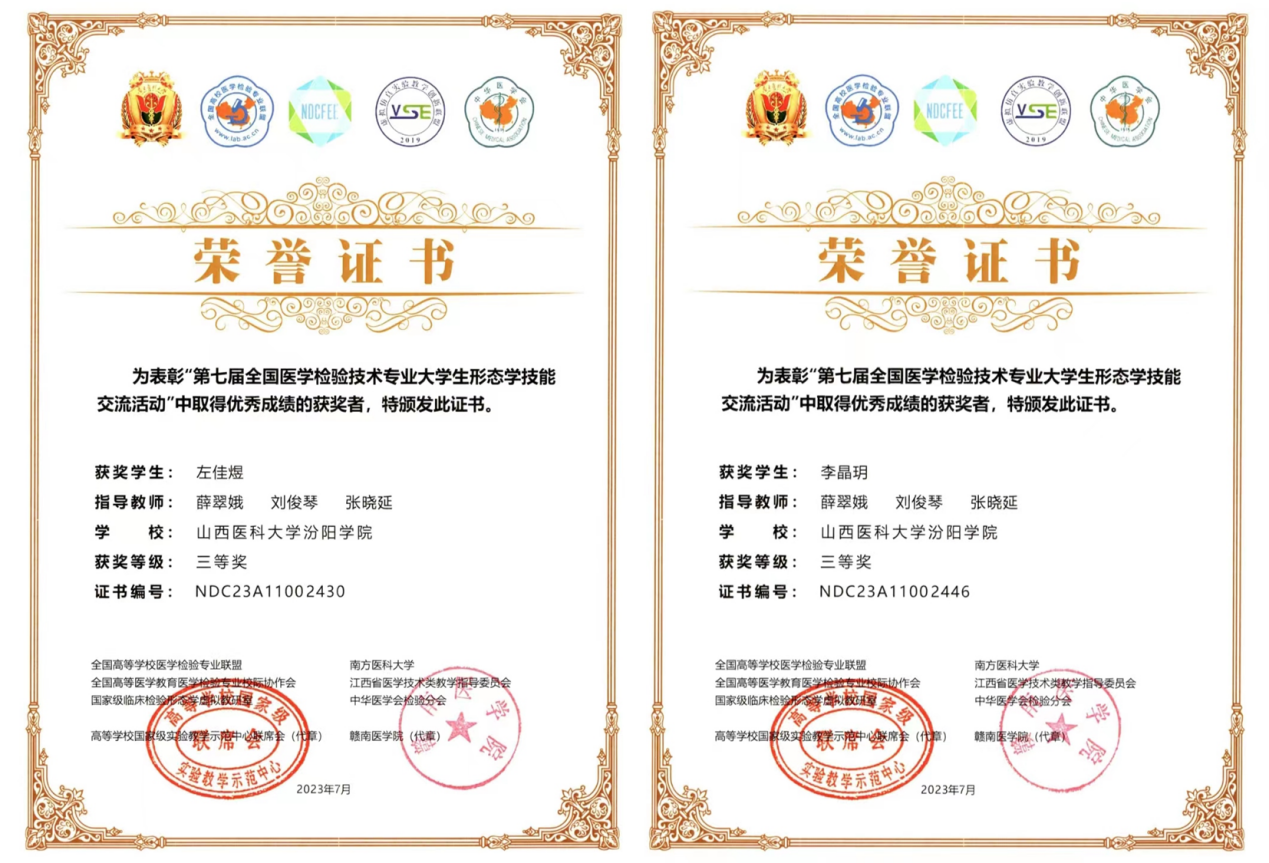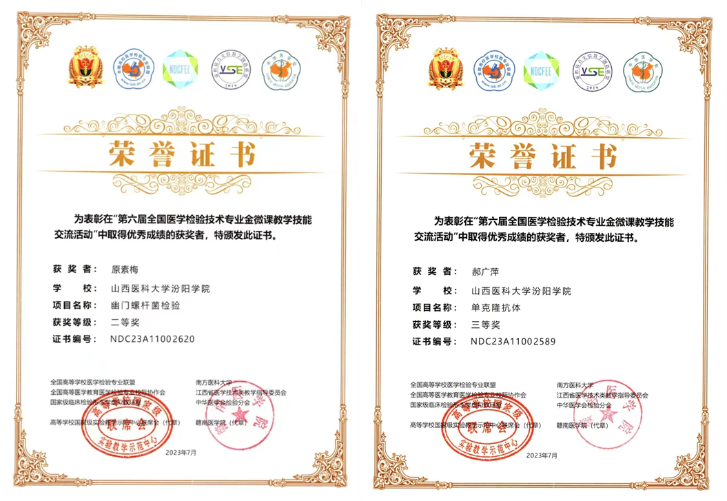 7月14日至7月17日,由高等学校国家级实验教学示范中心联席会、全国高等医学教育医学检验专业校际协作会、全国高等学校医学检验技术专业联盟等单位主办,中华医学会检验分会协办的2023年全国医学检验信息化发展论坛暨信息化成果展示交流会在江西赣州举行。beat365医学检验系原素梅老师、郝广萍老师分别在金微课比赛中获得二等奖、三等奖,薛翠娥老师、刘俊琴老师和张晓延老师指导的720班李晶玥同学和s722班左佳煜同学分别获得形态学大赛本科组三等奖,为beat365争得了荣誉。