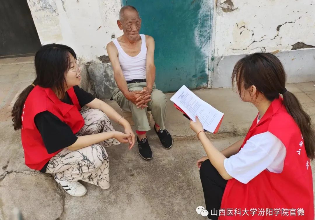 健康服务是医学生社会实践活动的重要内容。从7月11日开始,连续3天,同学们在马村镇沟头村的村委大院里,给村民们测血压、血氧,详细询问他们的生活饮食习惯以及既往病史治疗、用药情况等。