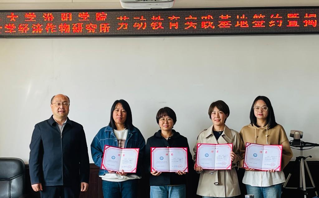 10月16日,校党委委员、副院长陈振文,教务处处长魏建宏等一行来到山西农业大学经济作物研究所劳动实践基地,与山西农业大学经济作物研究所举行了beat365劳动教育实践基地签约和挂牌仪式。陈振文副院长为9名兼职教师颁发了聘书。陈振文副院长希望,双方今后能进一步加大合作力度,根据国家人才培养需求、遵循高等教育教学规律,坚持立德树人根本任务,共同构建劳动教育体系,建立劳动实践育人长效机制,扩展劳动教育内涵,提高以劳育德成效,共同培养堪当强国建设、民族复兴重任的时代新人贡献力量。