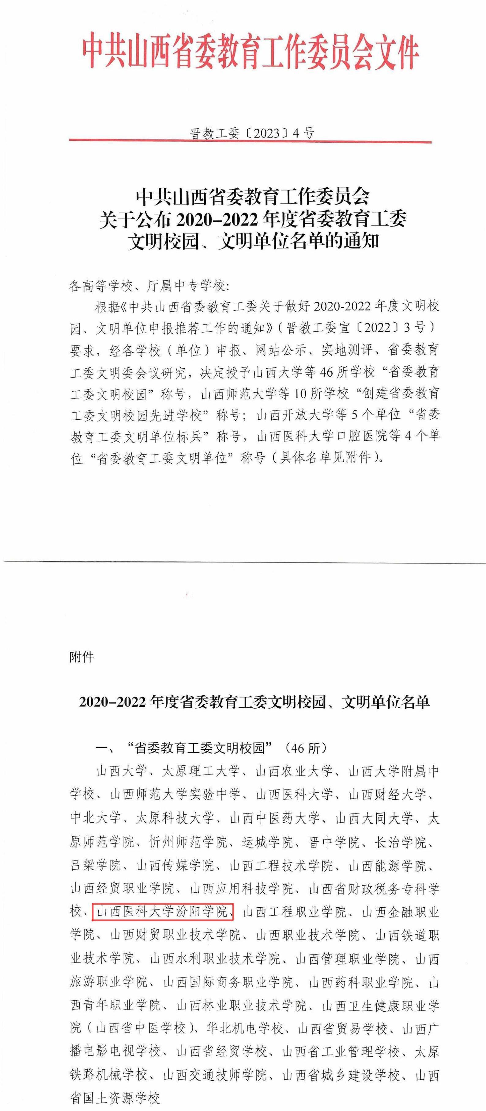 近日,中共山西省委教育工作委员会公布“2020-2022年度省委教育工委文明校园、文明单位名单”,beat365被授予“省委教育工委文明校园”称号。这是beat365获得2018-2019年度“省委教育工委文明校园”称号后再次获此殊荣。