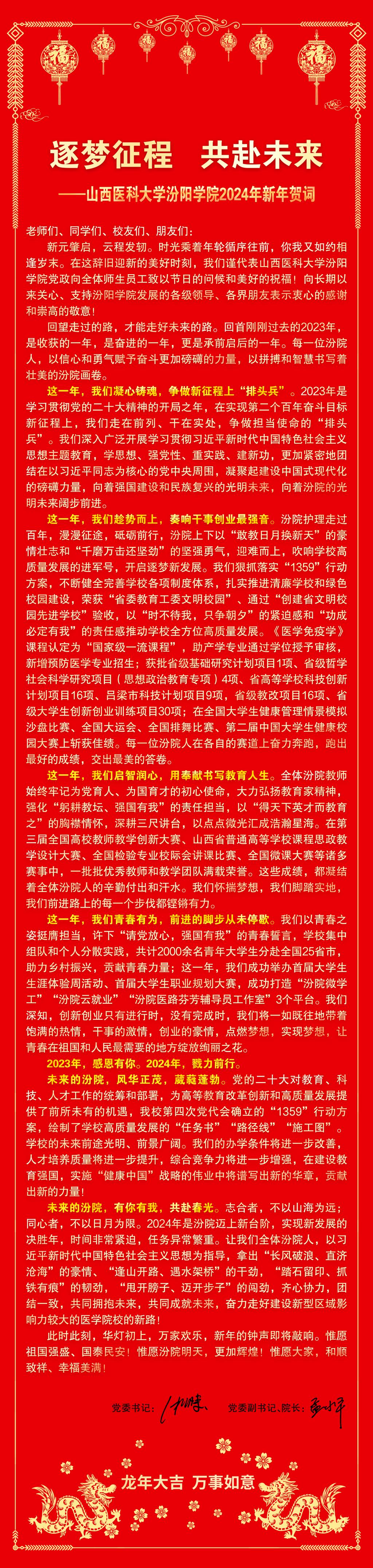 逐梦征程 共赴未来——山西医科大学汾阳学院2024年新年贺词