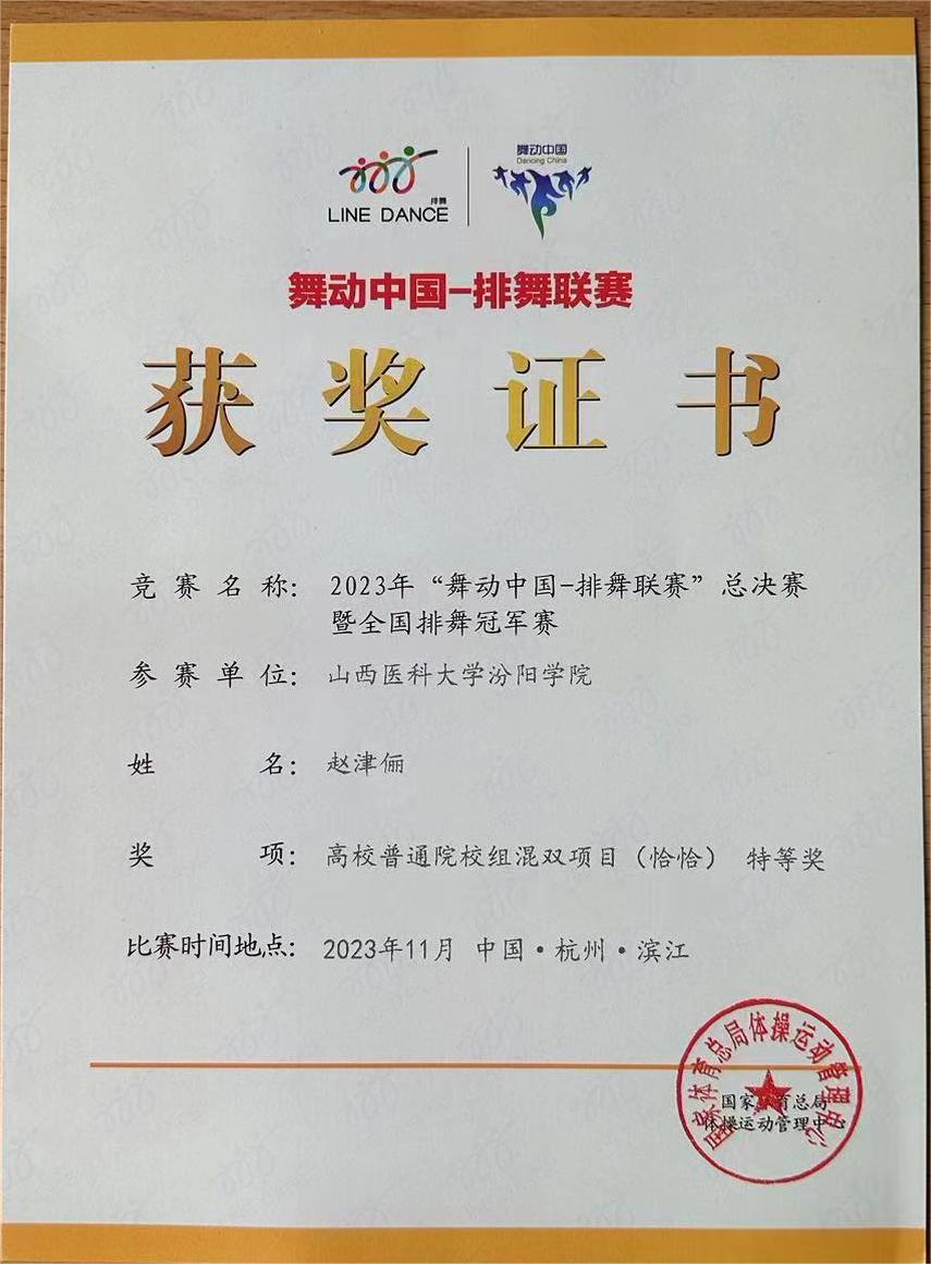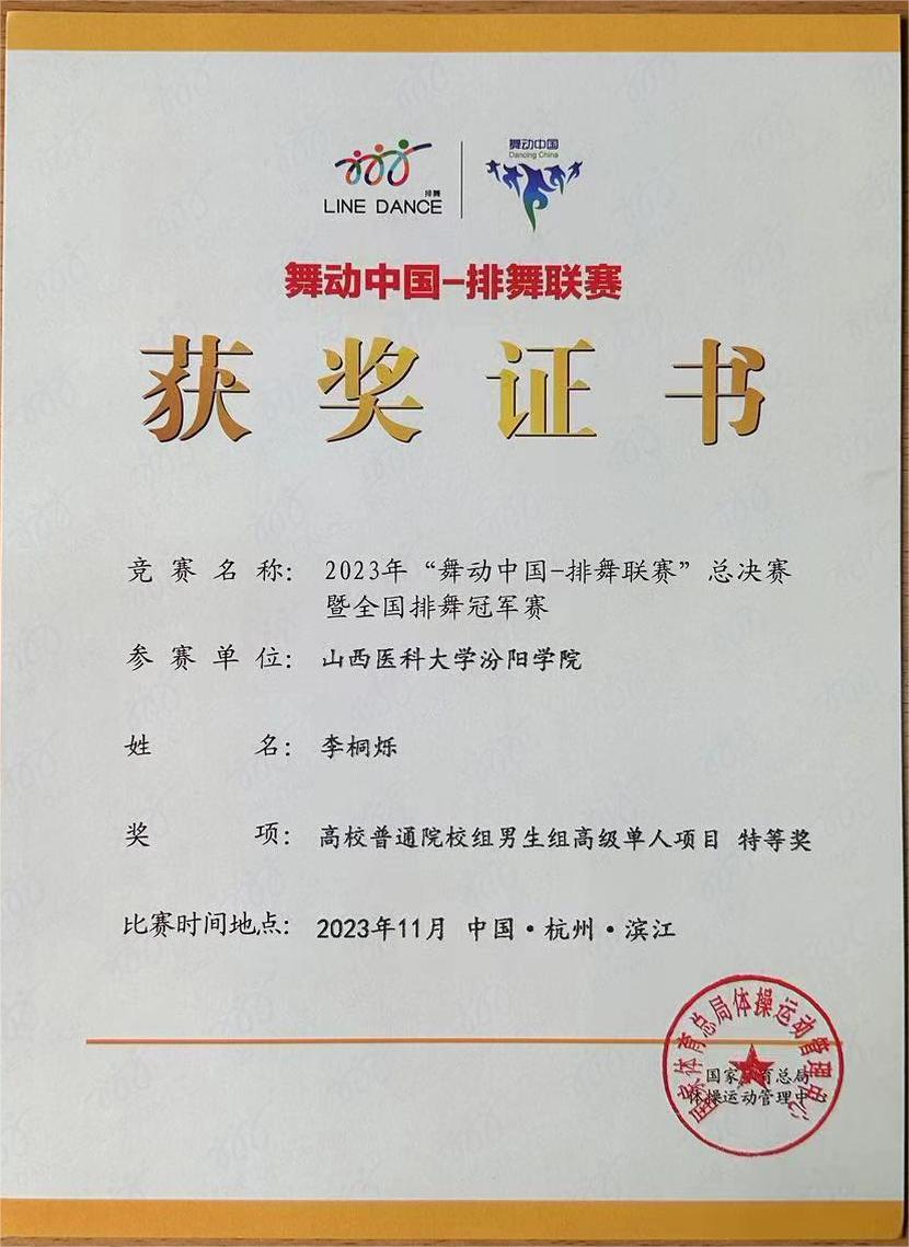 11月8日至13日,由国家体育总局体操运动管理中心、中国蹦床与技巧协会主办,中国蹦床与技巧协会排舞分会、杭州市滨江区文化和广电旅游体育局等承办的2023年“舞动中国——排舞联赛”总决赛暨全国排舞冠军赛在杭州市滨江体育馆隆重开幕。beat365健美操代表队斩获团体奖“混双(恰恰)特等奖”,62140班李桐烁、92101班赵津俪分别拿下男子单人高级特等奖、女子单人初级一等奖。