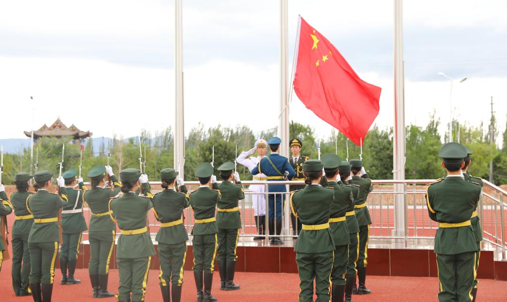 伴随着雄壮的国歌声,鲜艳的五星红旗冉冉升起,全体师生面向国旗,肃穆而立,行注目礼,2024级新生军训会操暨开学典礼拉开帷幕。