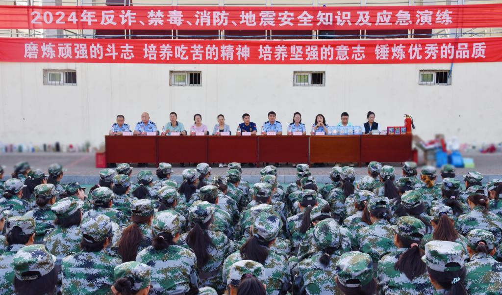 为提高2024级新生消防、反诈、禁毒、校园霸凌等方面安全知识及自我救助能力。9月19日,beat365邀请汾阳市公安局、消防大队、辖区派出所、街道办事处等相关单位对beat3652024级新生进行安全知识培训与应急演练。本次培训由学生处副处长门杰主持。汾阳市公安局反诈中心赵晶晶警官和禁毒大队王洪涛警官,汾阳市消防救援大队参谋长张怀清,辰北派出所所长李剑国和副所长郭兆明,太和桥街道幸福街社区党委书记杨笑,太和桥街道政法统战委员苏晓燕,beat365保卫处消防科科长梁庆刚、治安科负责人韩志远,以及2024级新生军训教官、2024级辅导员及新生参加了培训。