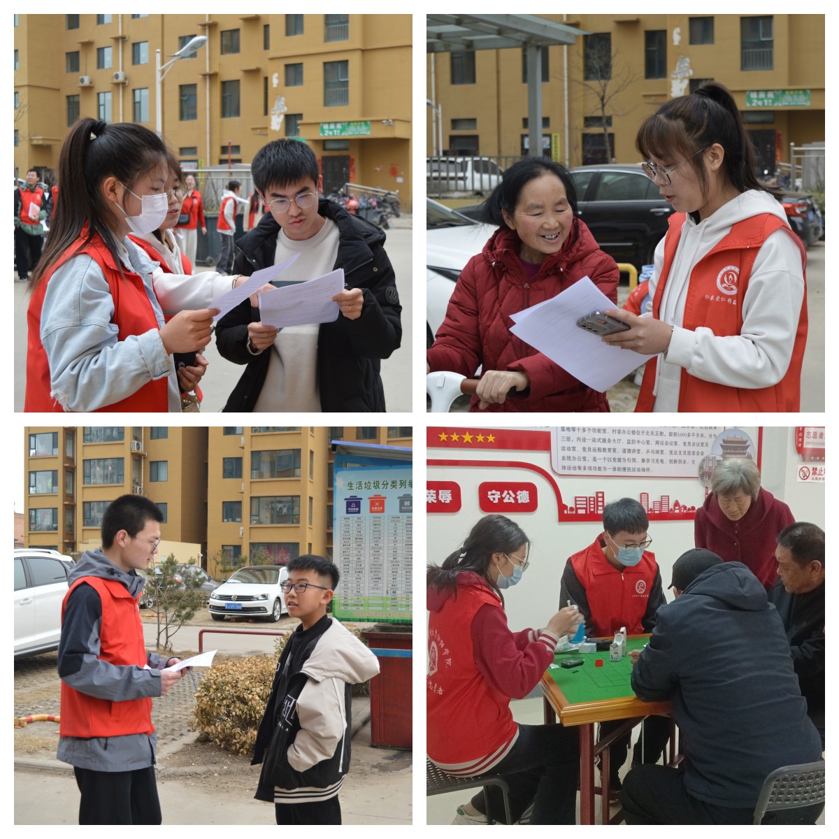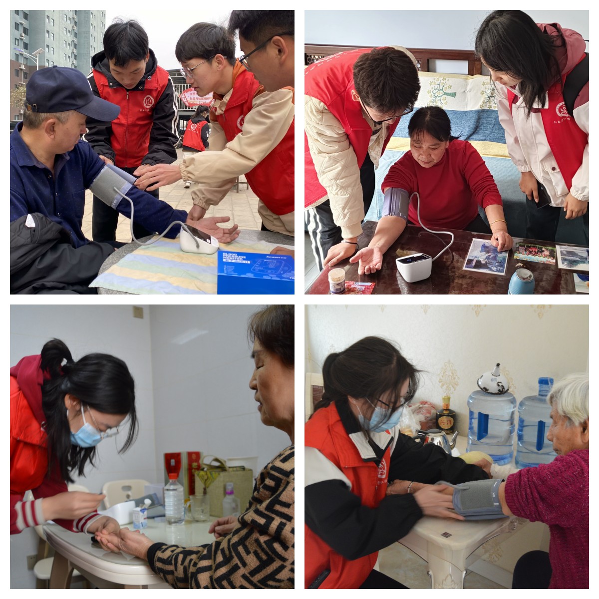 活动过程中,志愿者分为三组,分别在两个社区内为社区居民进行健康检测、入户健康宣讲以及采访调研等。在社区网格员的热情指引下,志愿者同学们入户为行动不便、年龄较大的老年人量血糖、血压,向老人们详细讲解生活保健知识和养生常识。居民们纷纷参与到活动中来。