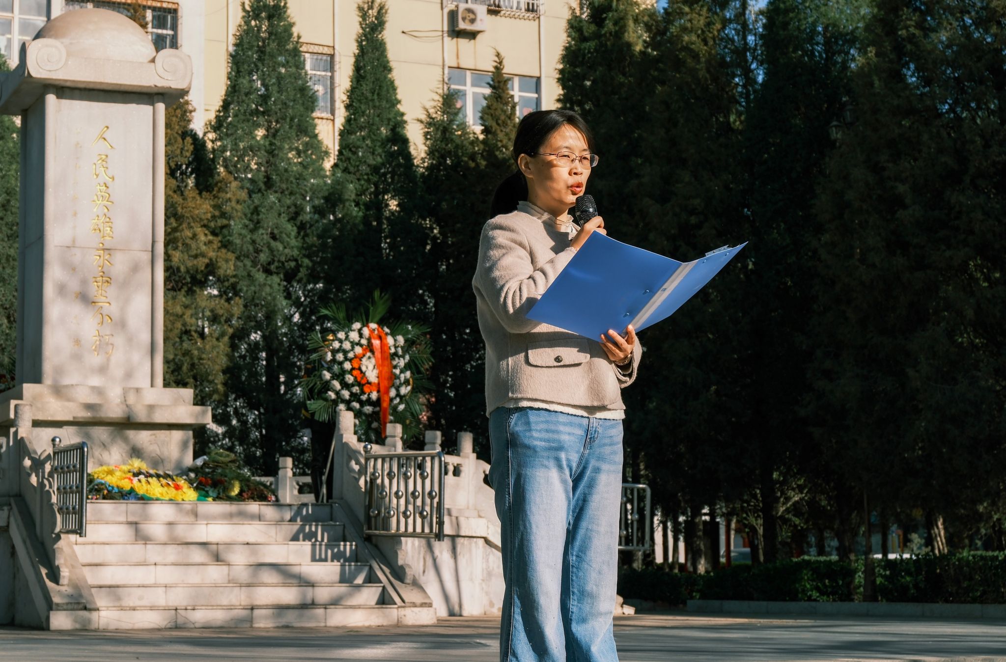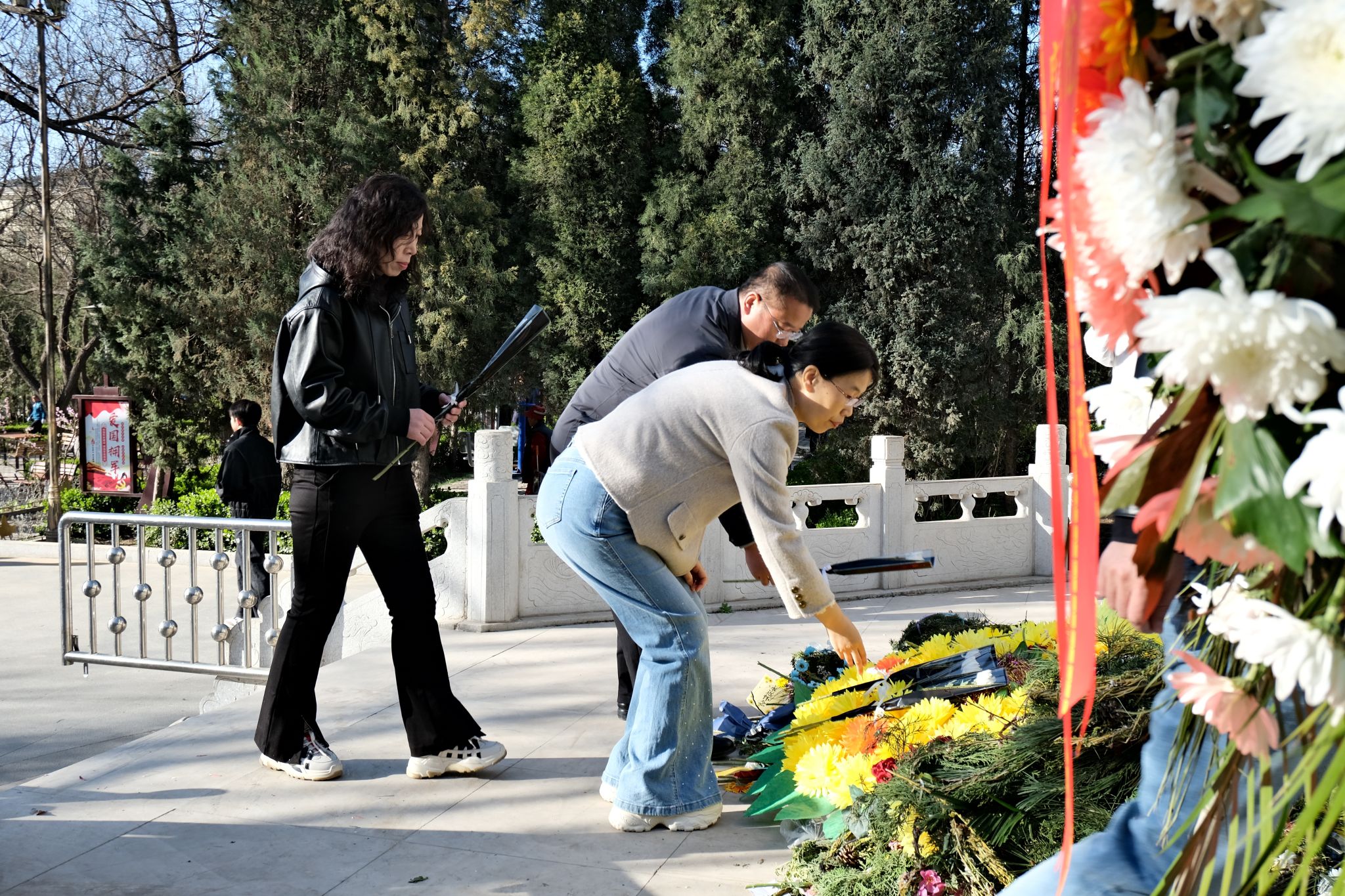 随后全体师生依次向烈士敬献鲜花并瞻仰了烈士纪念碑。