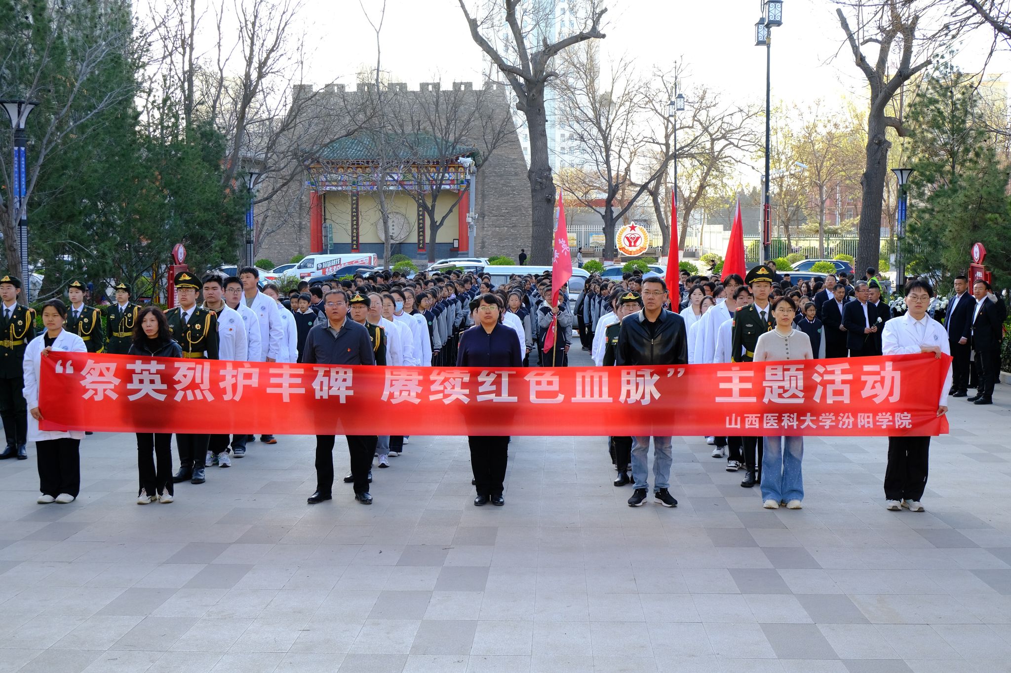 为深切缅怀先烈,教育引导全校学生继承和发扬革命传统,赓续红色血脉,凝聚奋进力量,4月2日上午8时,beat365思政部和团委组织师生赴汾阳市烈士陵园开展“祭英烈护丰碑 赓续红色血脉”行走的思政课活动。思政部副主任宋泽莲、团委副书记王慧勇、思政部综合办公室主任张兴钧,青马社、国旗护卫队指导教师及学生代表参加了此次活动。