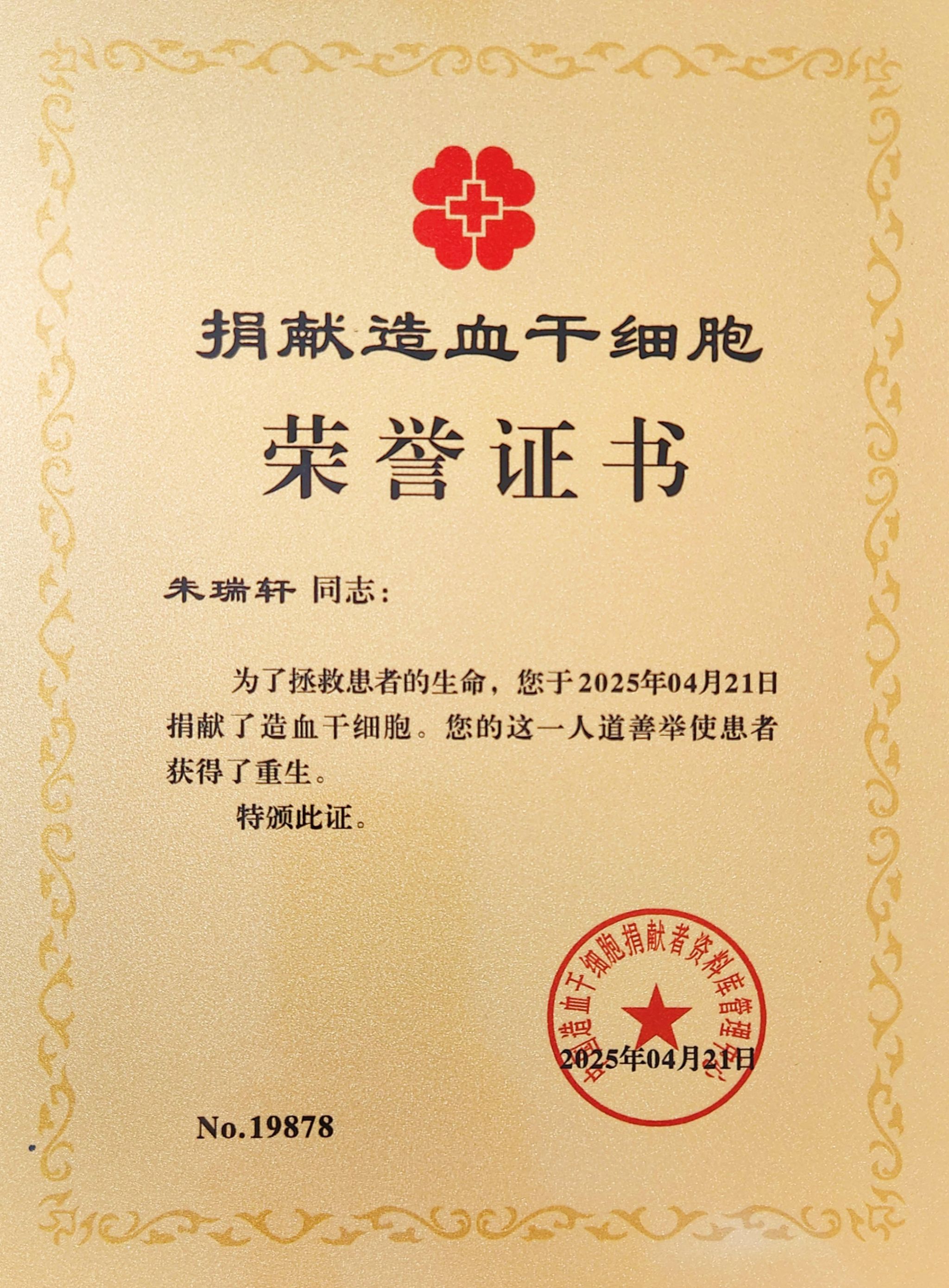 beat365首例!朱瑞轩同学成功捐献造血干细胞