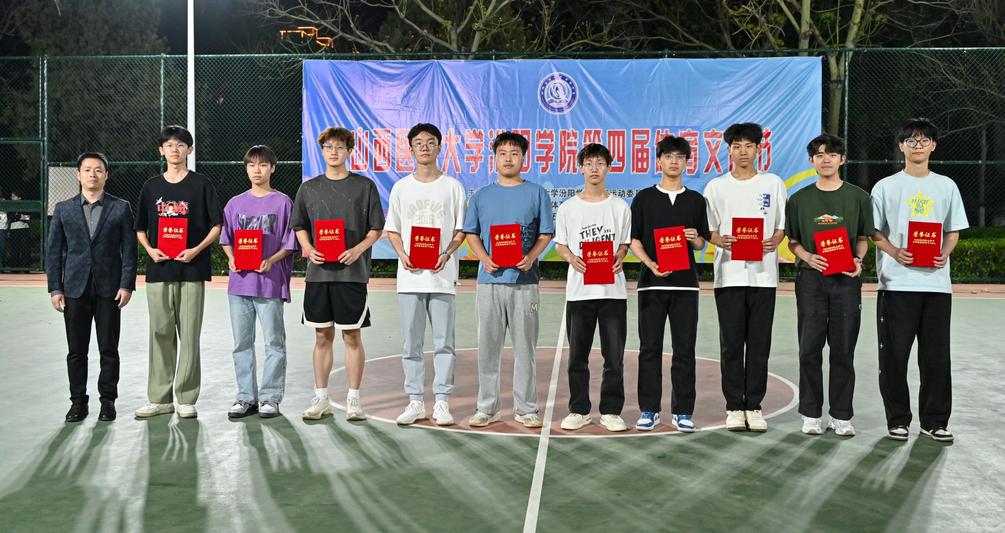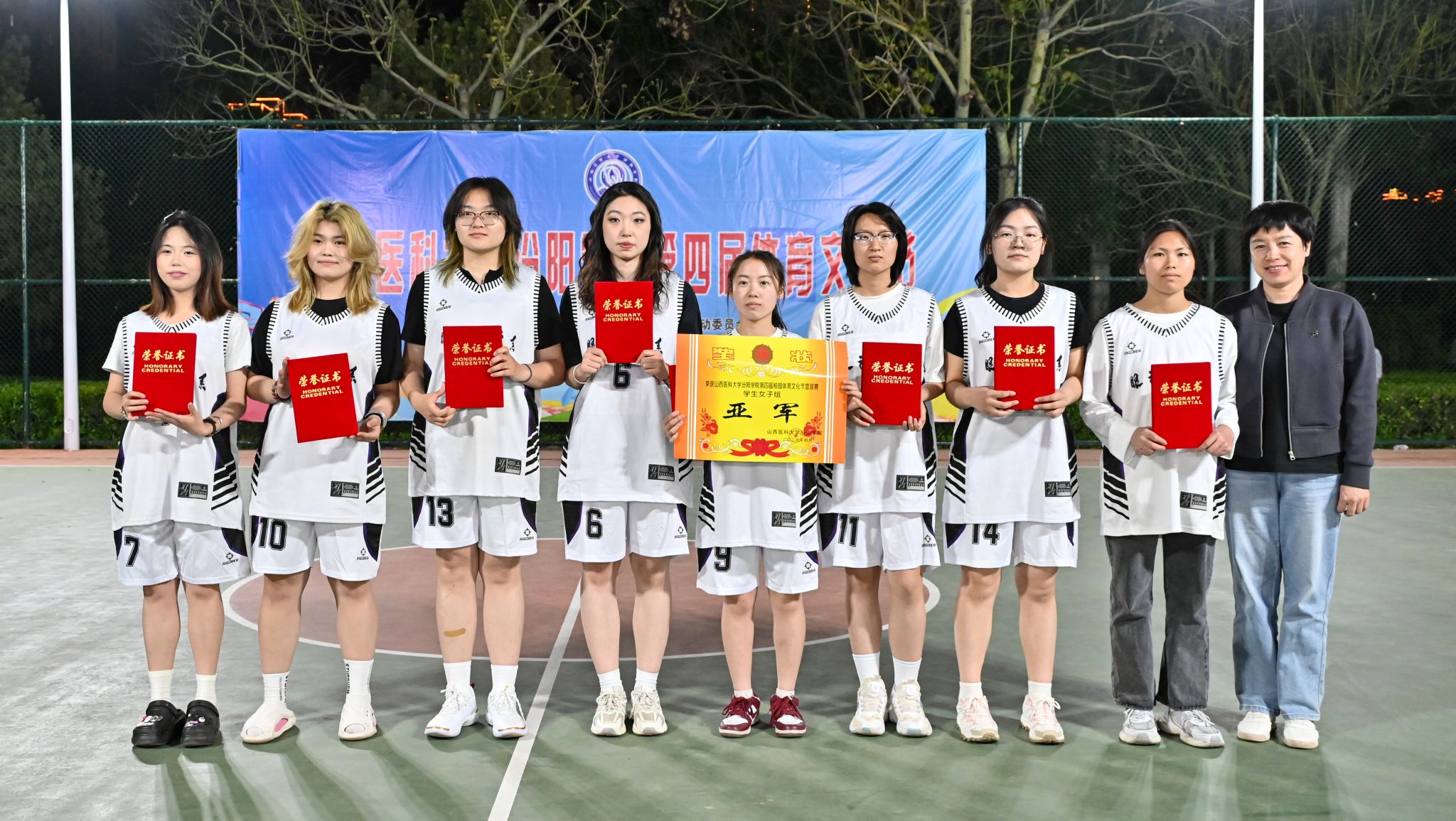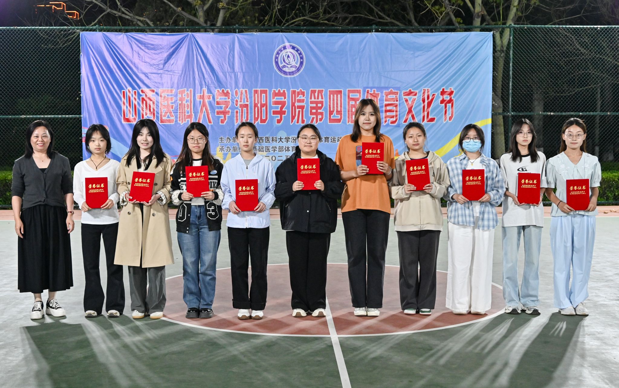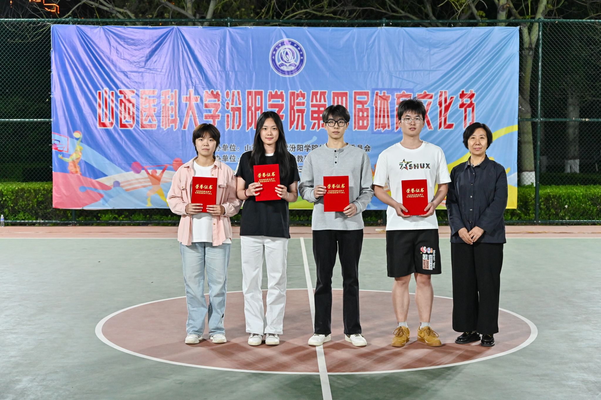 在校体育运动委员会的统筹指导和各系部、相关职能部门的积极配合、全校师生的热情参与和共同努力下,基础医学部体育教研室精心组织的beat365第四届校园体育文化节顺利完成各项赛事,圆满落下帷幕。4月23日晚,闭幕式在篮球场隆重举行。校党委委员、副院长、体育运动委员会主任陈振文,体育运动委员会副主任、基础医学部主任乔海兵,各系部党总支书记、副书记,保卫处、学生工作部、团委等相关部门负责同志出席了闭幕式。