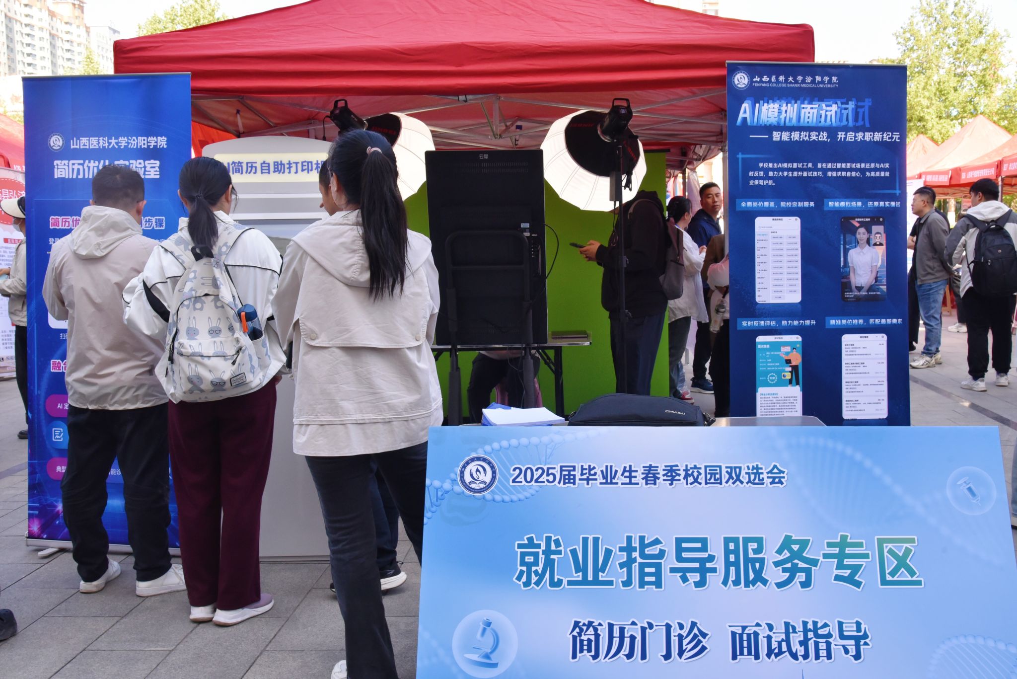 为切实帮助毕业生抓住高质量就业机会,本次双选会创新思路,现场设立了“AI赋能就业服务区”,通过AI简历自助生成系统、智能面试模拟舱等数字化工具,为参会毕业生、在校生提供精准化就业指导。学校就业导师团队现场开展“简历问诊”、面试指导;毕业生辅导员现场设立“就业护航站”“政策宣讲区”,形成“智能工具辅助+专业教师指导”的双轨服务体系,打通毕业生就业“最后一公里”。