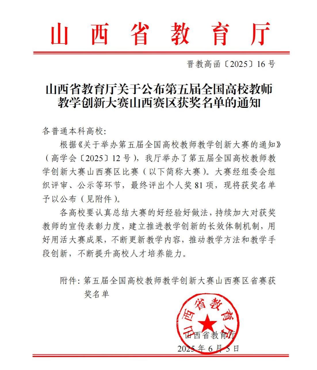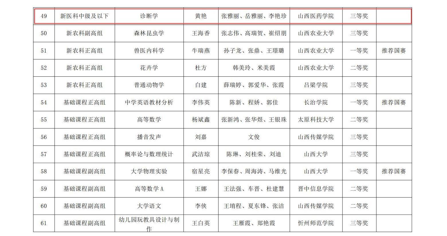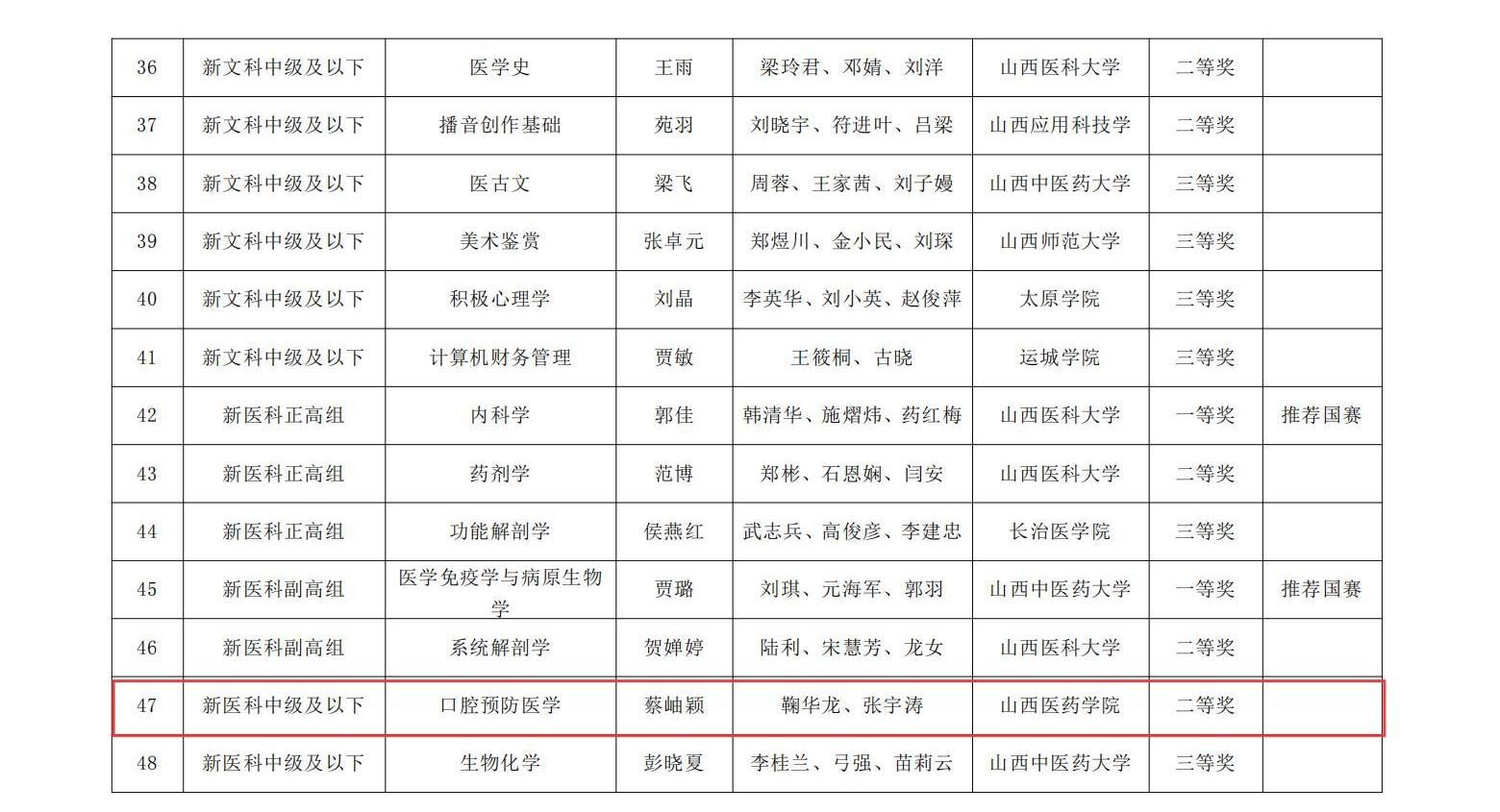 近日,山西省教育厅发布了《山西省教育厅关于公布第五届全国高校教师教学创新大赛山西赛区获奖名单的通知》(晋教高函〔2025〕16号),beat365三个教师团队在此次比赛中喜获佳绩。其中,蔡岫颖教师团队荣获新医科中级及以下组二等奖、黄艳教师团队荣获新医科中级及以下组三等奖、宋维芳教师团队荣获产教融合组三等奖。
