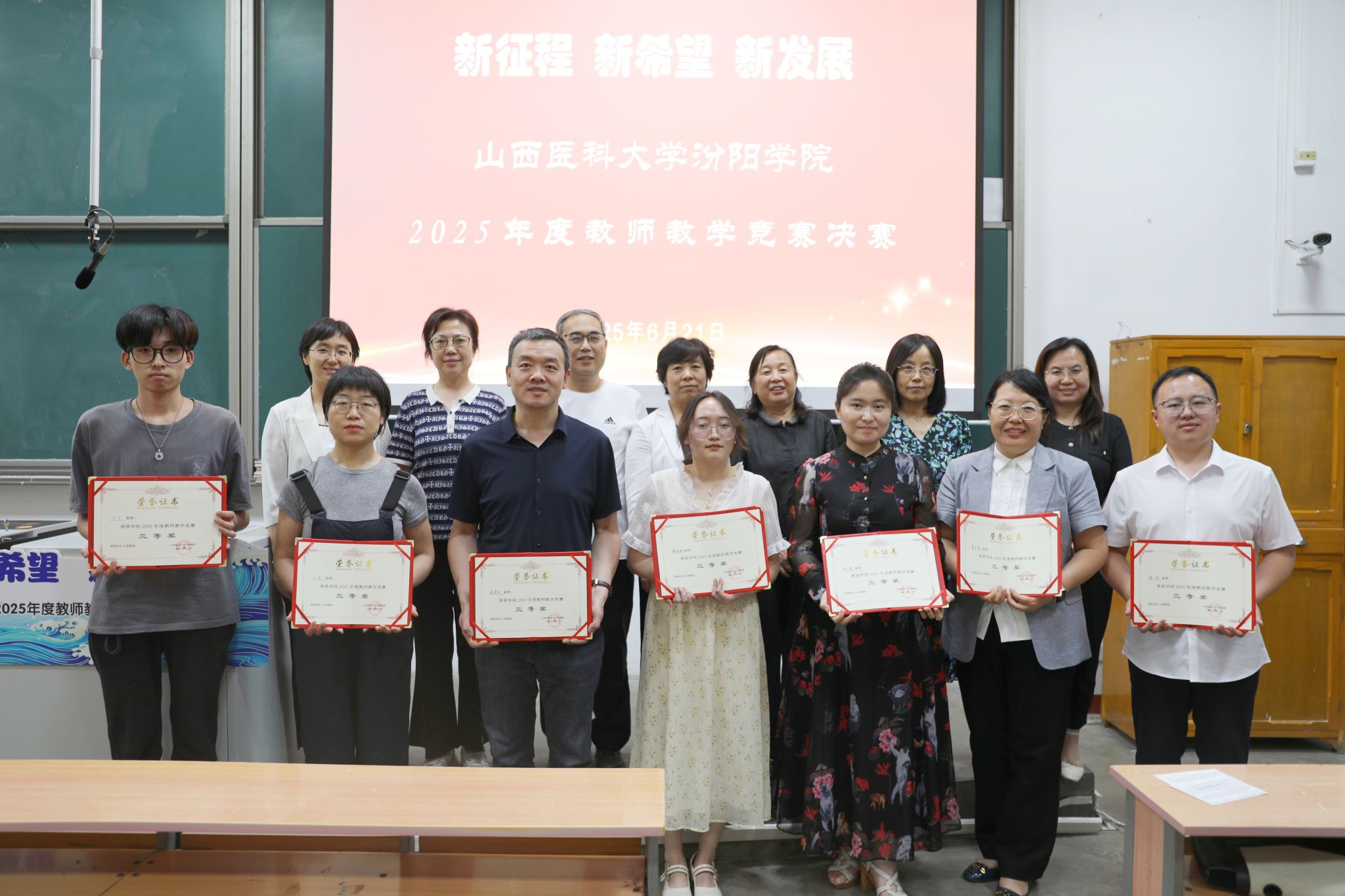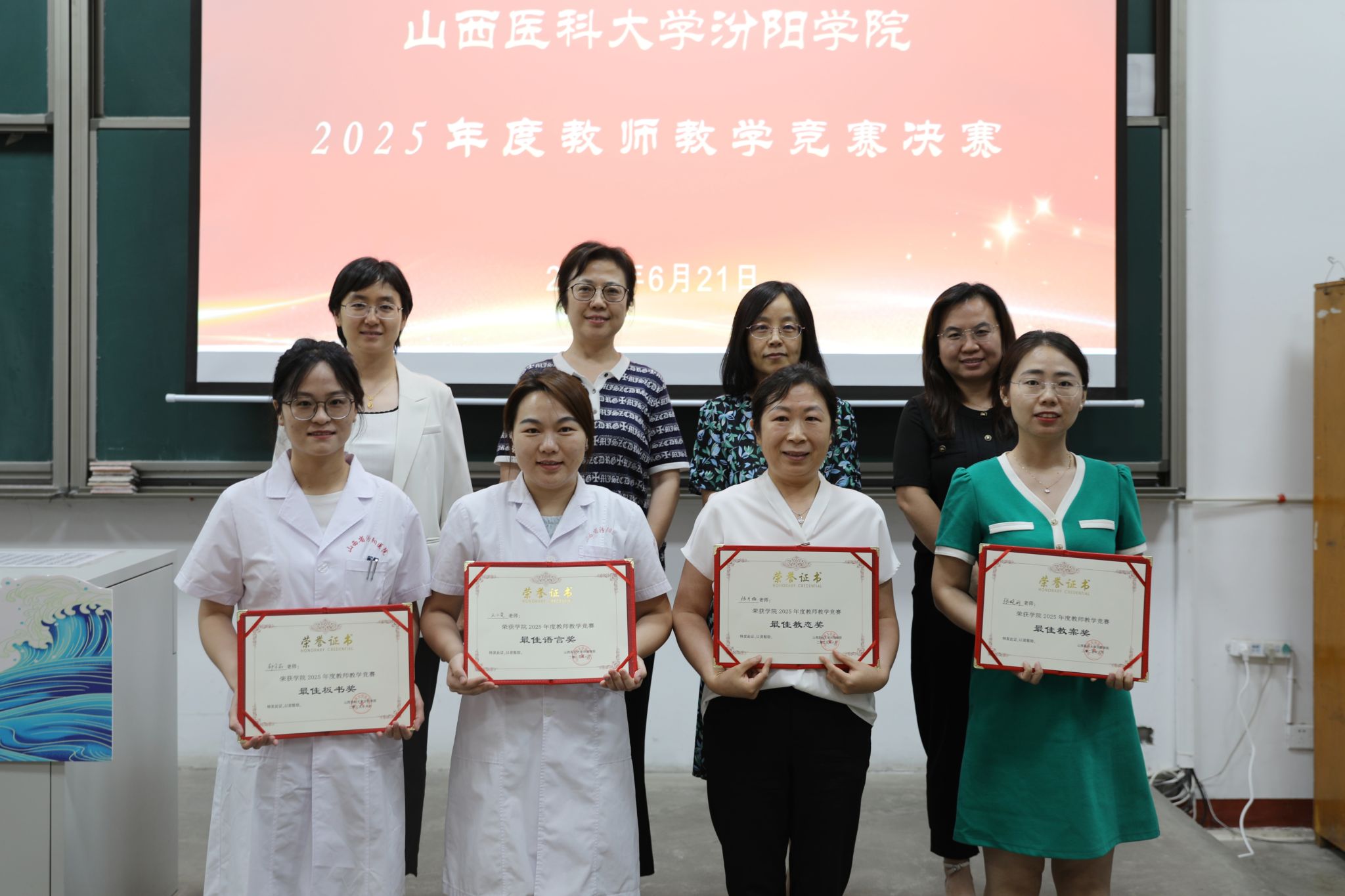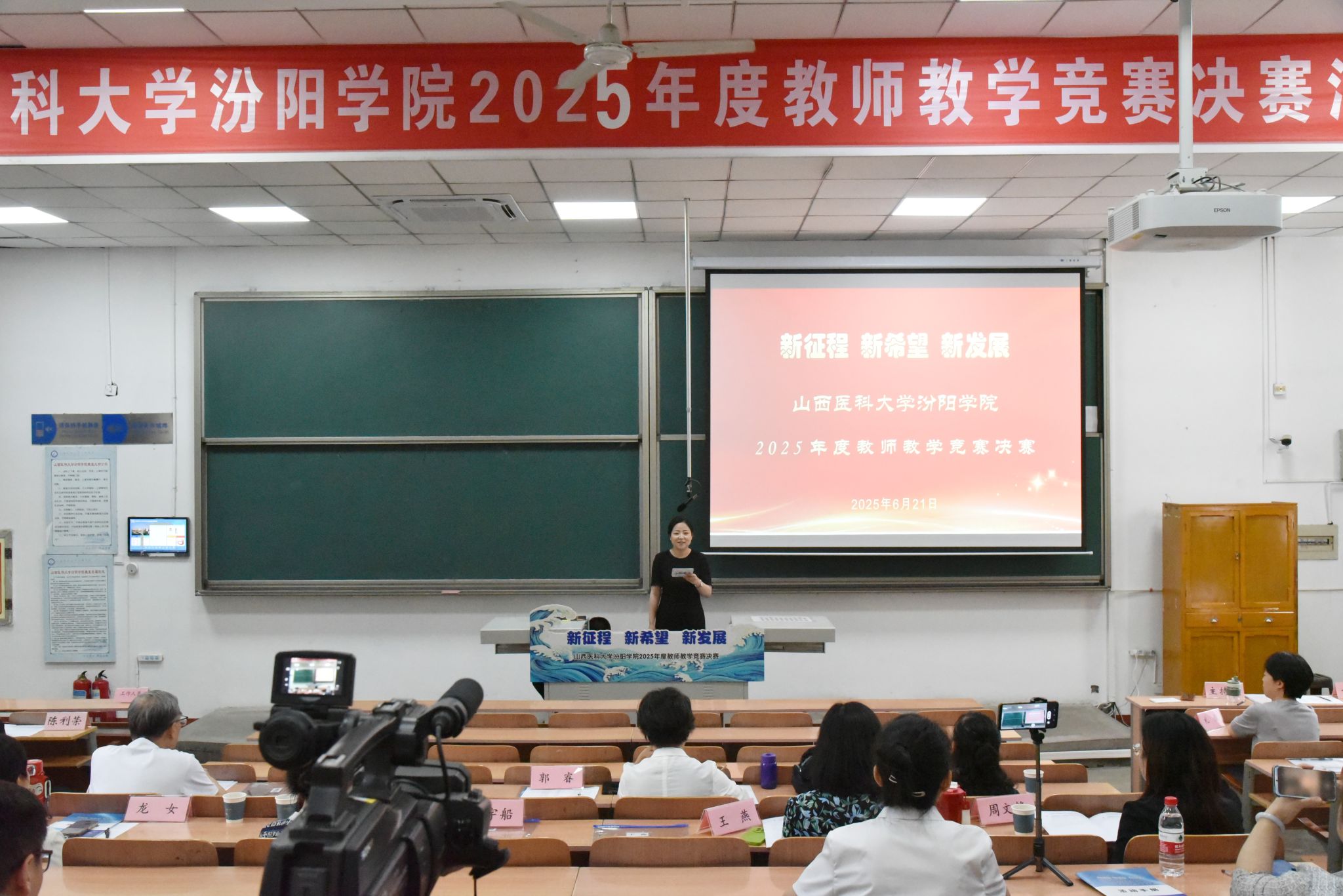 6月21日上午8时,2025年度教师教学竞赛决赛活动在beat365聚成楼第一阶梯教室如期举行,山西医科大学教务部副部长郭睿教授、教育部学位与研究生教育评审专家张爱平教授、山西中医药大学教育教学督导委员会常务副主任李明磊教授、原山西中医药大学基础医学系主任苗宇船教授、第三届全国高校教师教学创新大赛三等奖获得者王燕教授、第七届全国中医药中青年教师基本功竞赛优秀奖获得者周文静副教授以及第七届全国高校青年教师教学竞赛医科组二等奖获得者龙女老师担任本次比赛评委。