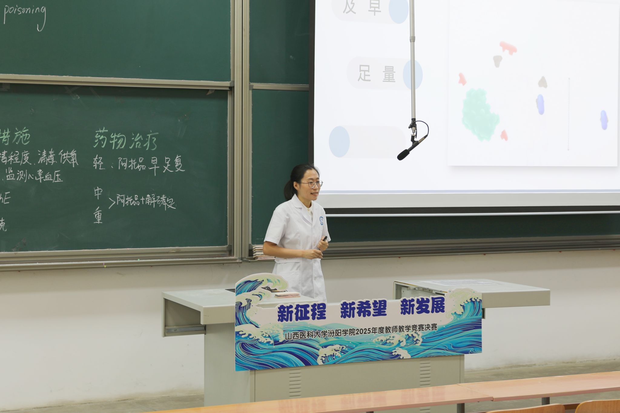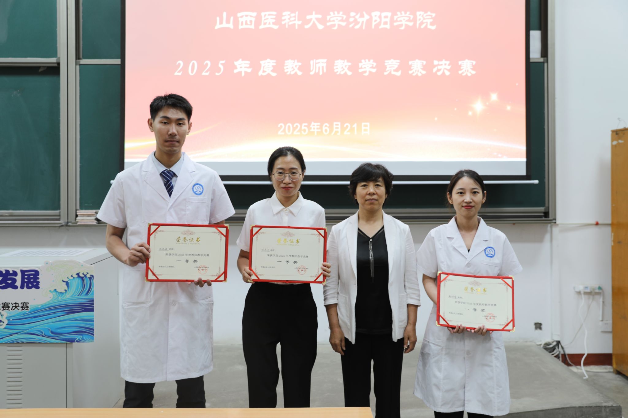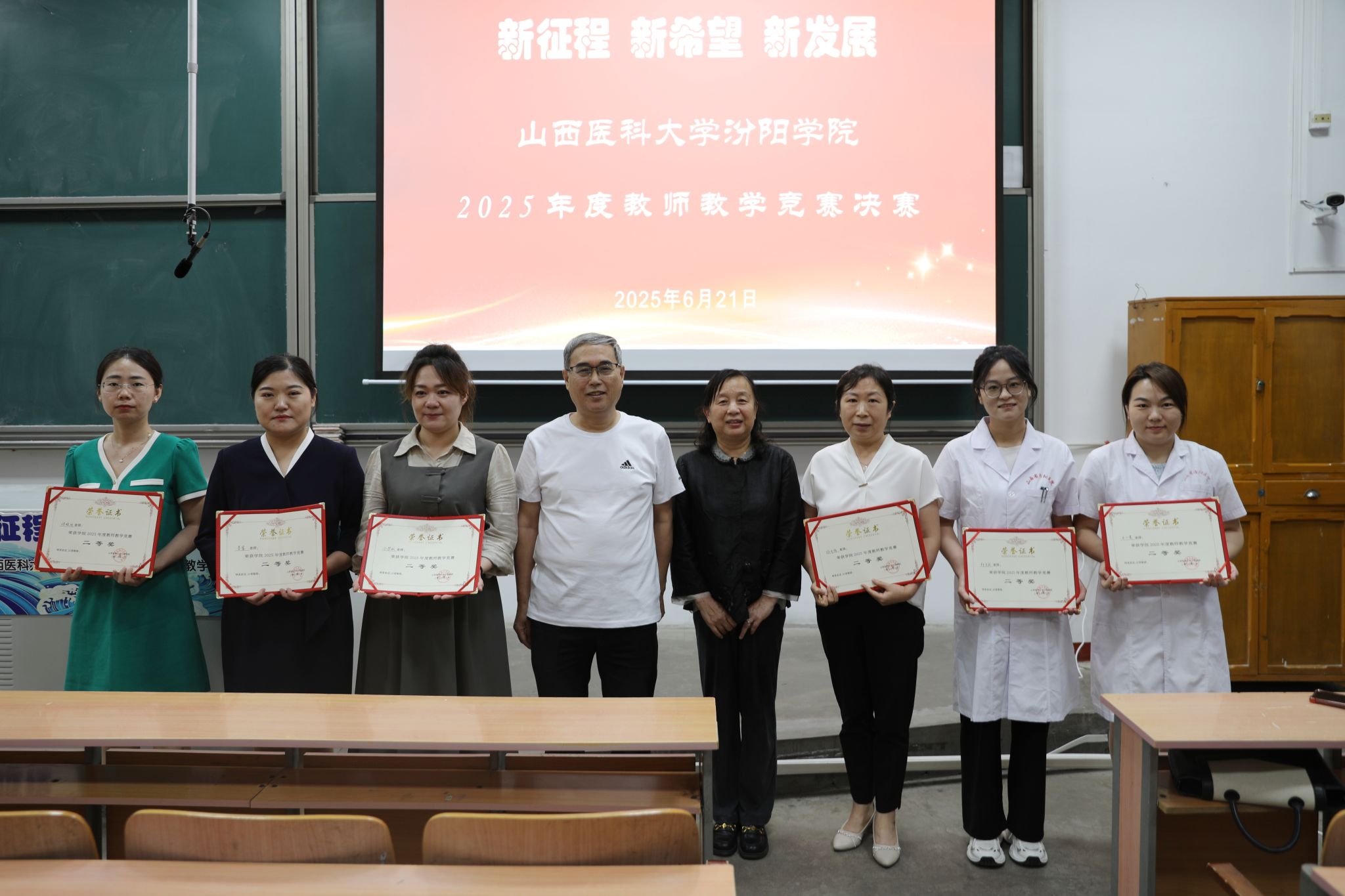 6月21日上午8时,2025年度教师教学竞赛决赛活动在beat365聚成楼第一阶梯教室如期举行,山西医科大学教务部副部长郭睿教授、教育部学位与研究生教育评审专家张爱平教授、山西中医药大学教育教学督导委员会常务副主任李明磊教授、原山西中医药大学基础医学系主任苗宇船教授、第三届全国高校教师教学创新大赛三等奖获得者王燕教授、第七届全国中医药中青年教师基本功竞赛优秀奖获得者周文静副教授以及第七届全国高校青年教师教学竞赛医科组二等奖获得者龙女老师担任本次比赛评委。