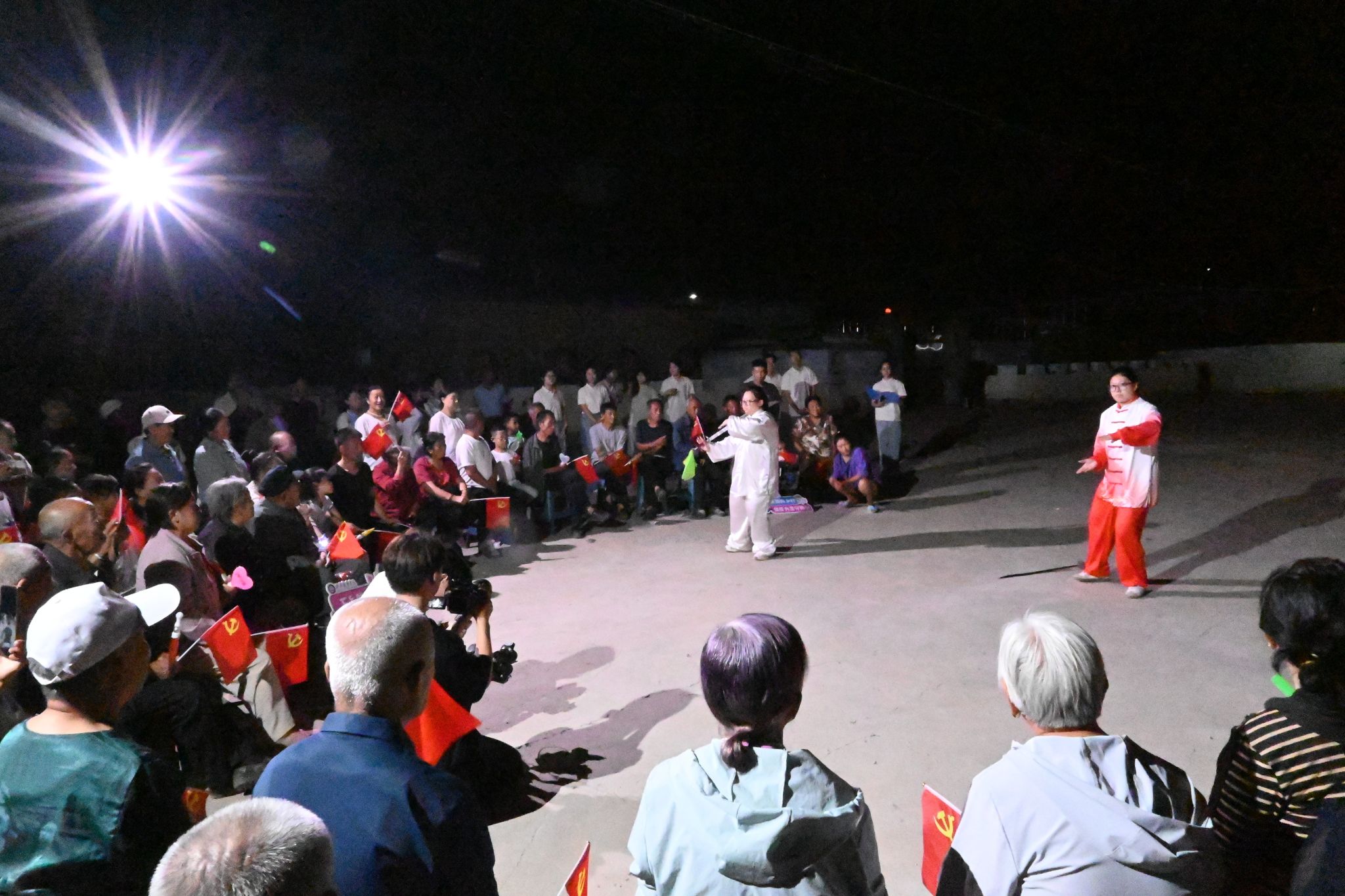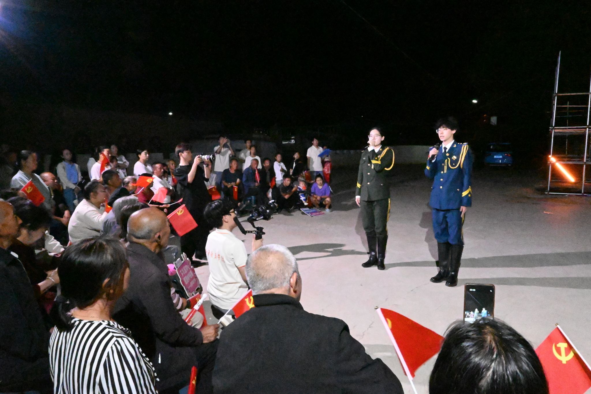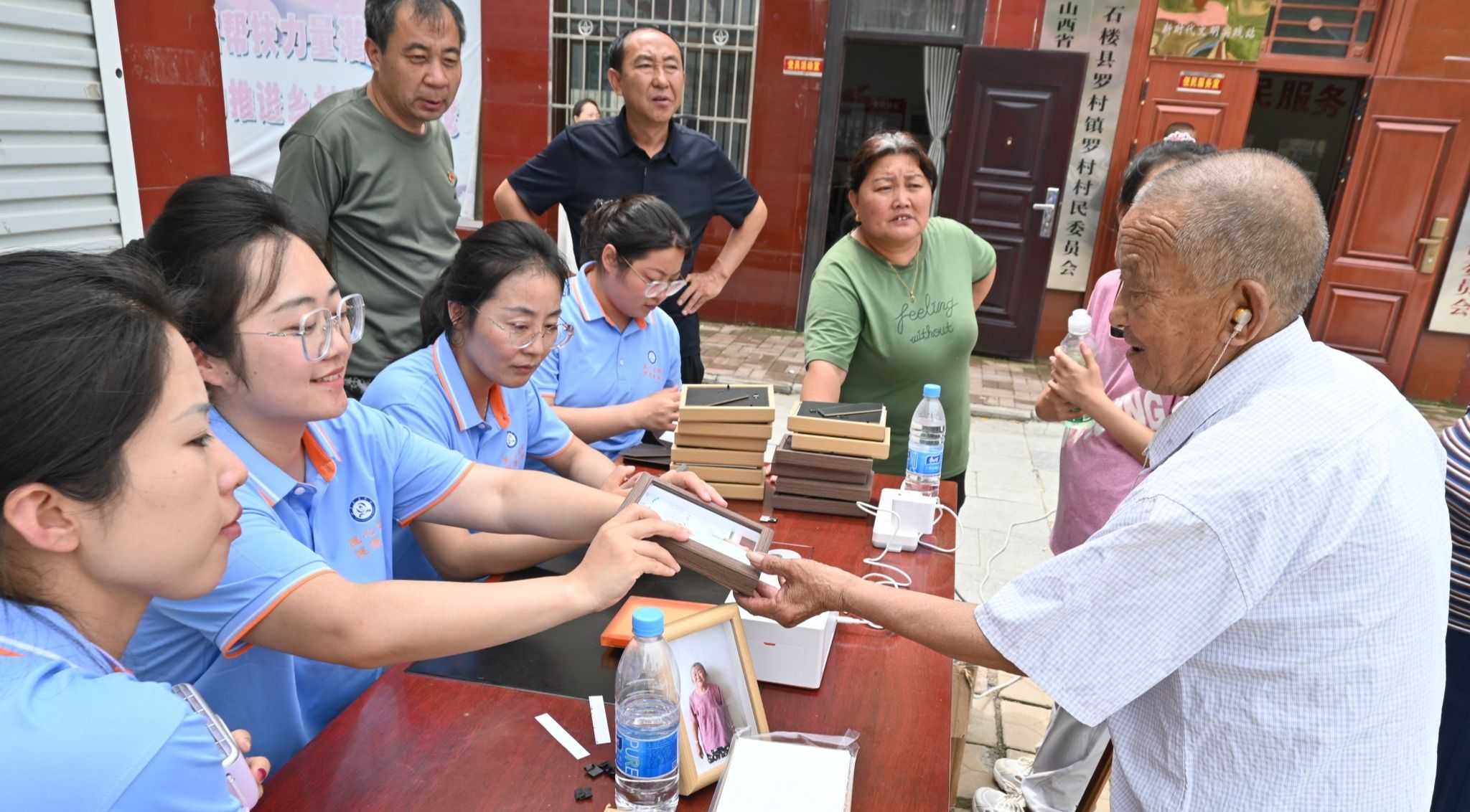 9日晚,实践团文艺小分队在车家坡村文化广场举办文艺晚会,队员们表演了整齐干练的枪操、经典老歌传唱、婀娜多姿的傣族舞和太极拳等节目,引来村民们的阵阵掌声。此外还开展了“礼赞生活、定格美好”免费为老乡拍照活动。队员们现场拍照、打印、装框。拍照现场排起长队,村民们纷纷与发小、家人合影。罗村75岁的退伍老大爷穿上珍藏多年的军装拍照,向抗战胜利80周年献礼。这些带着温度的影像,定格了老乡们的笑脸和生活的美满。