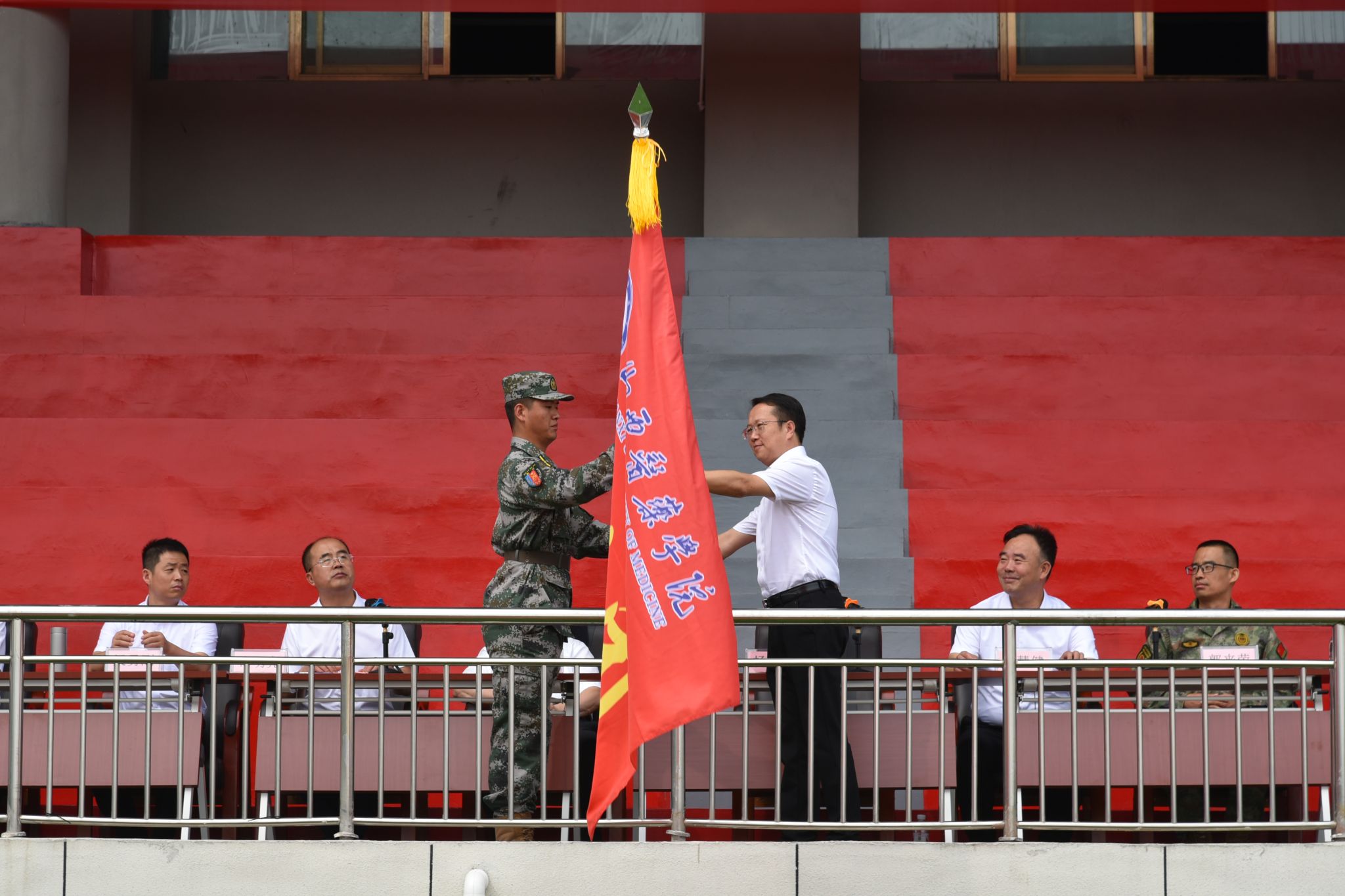杨利军授军训团旗。