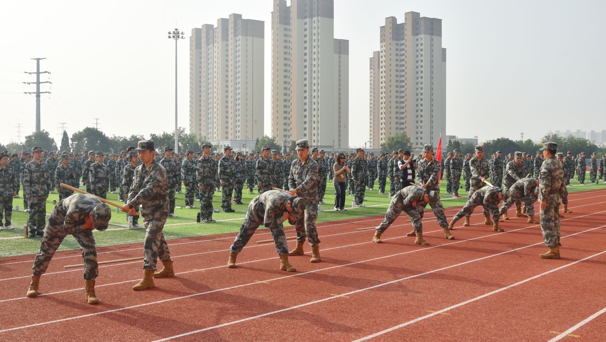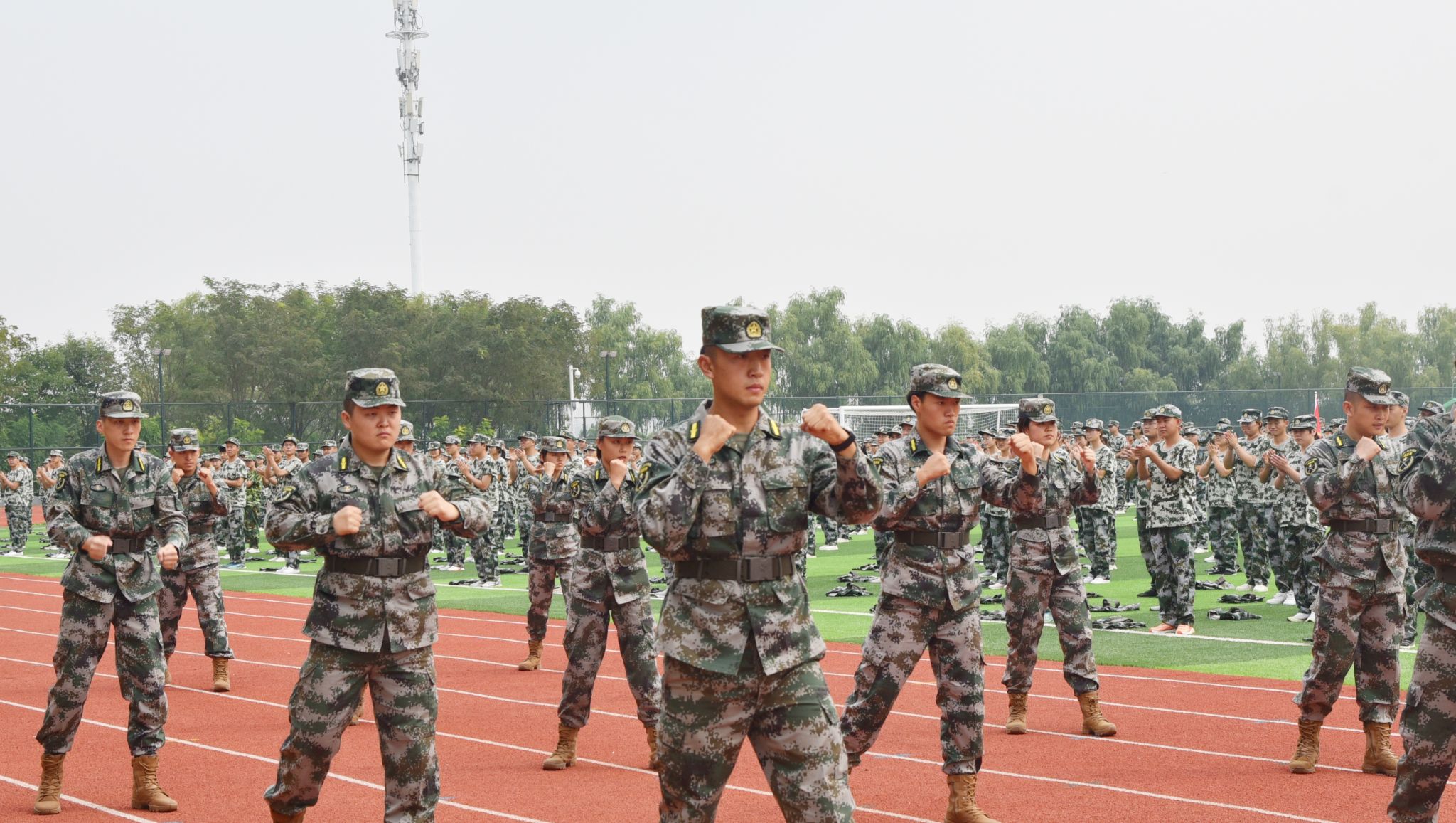 军训教官团进行示范。