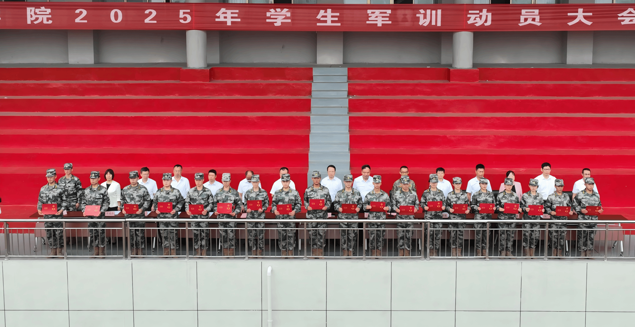 郭来荣宣布军训教官团教官聘任决定。与会领导为军训教官团教官颁发聘书。