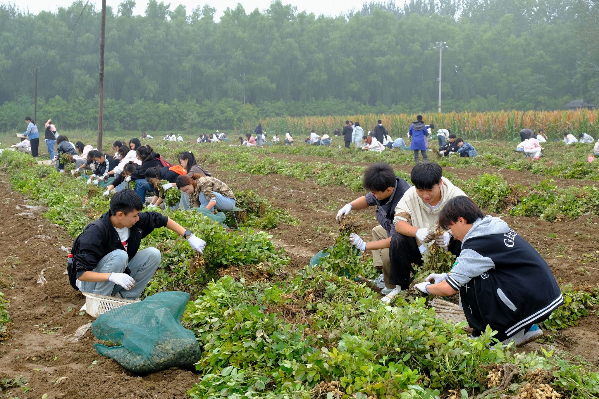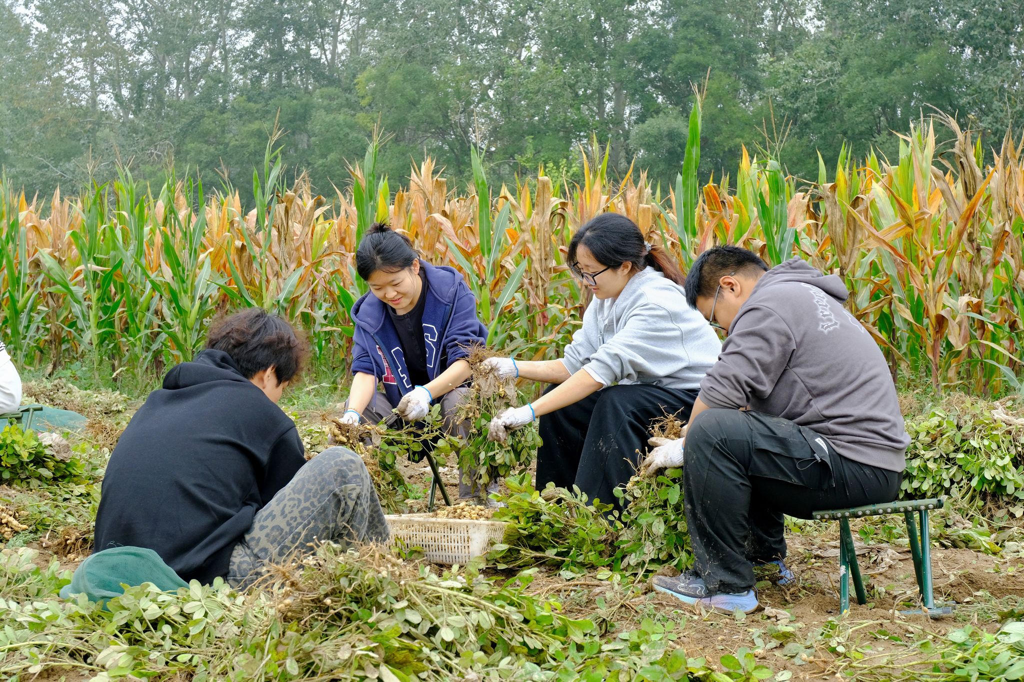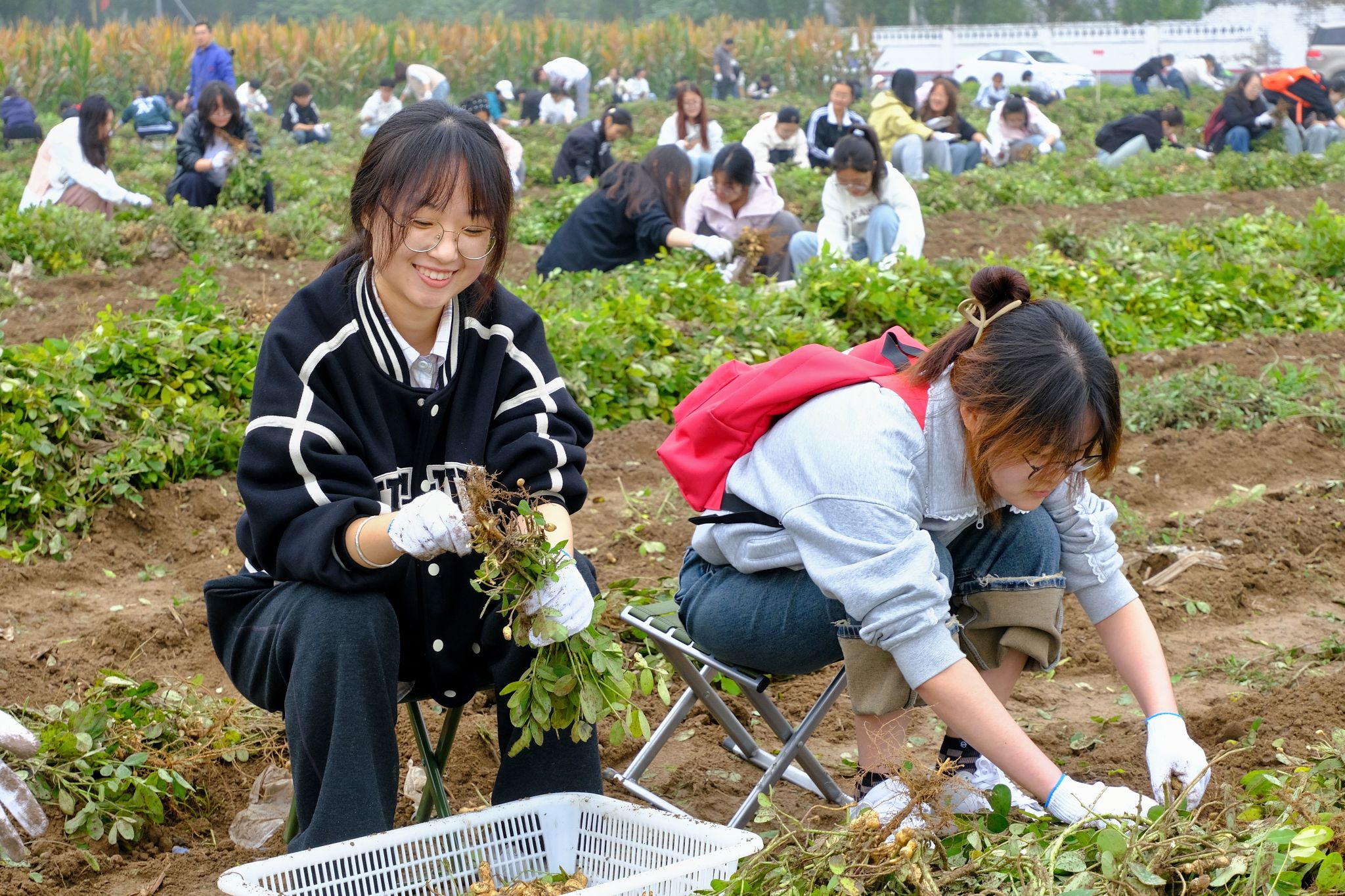 随后,同学们在山西农业大学经济作物所教师的指导下,开展花生采摘劳动实践。老师现场讲解了花生的种植、培育与采收知识,同学们分组开展劳动竞赛,以班级为单位比拼采摘效率、作物保护与团队协作能力。现场气氛热烈,同学们热情高涨,在汗水中体验劳动的艰辛与快乐,在协作中增强了集体荣誉感。