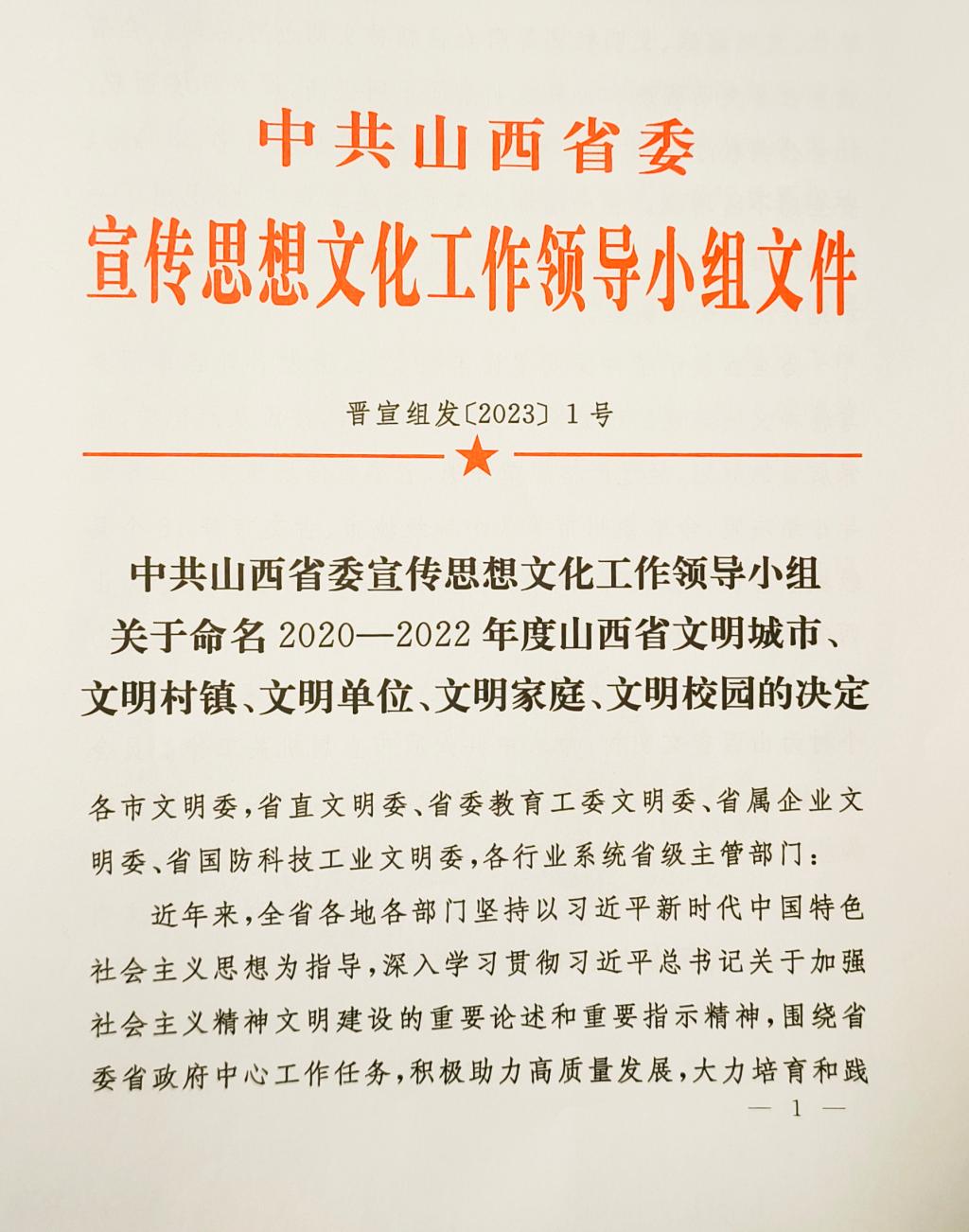 近日,中共山西省委宣传思想文化工作领导小组公布《关于命名2020-2022年度山西省文明城市、文明村镇、文明单位、文明家庭、文明校园的决定》,beat365被授予“创建省文明校园先进学校”称号。这是beat365文明校园建设工作取得的重大标志性成果。