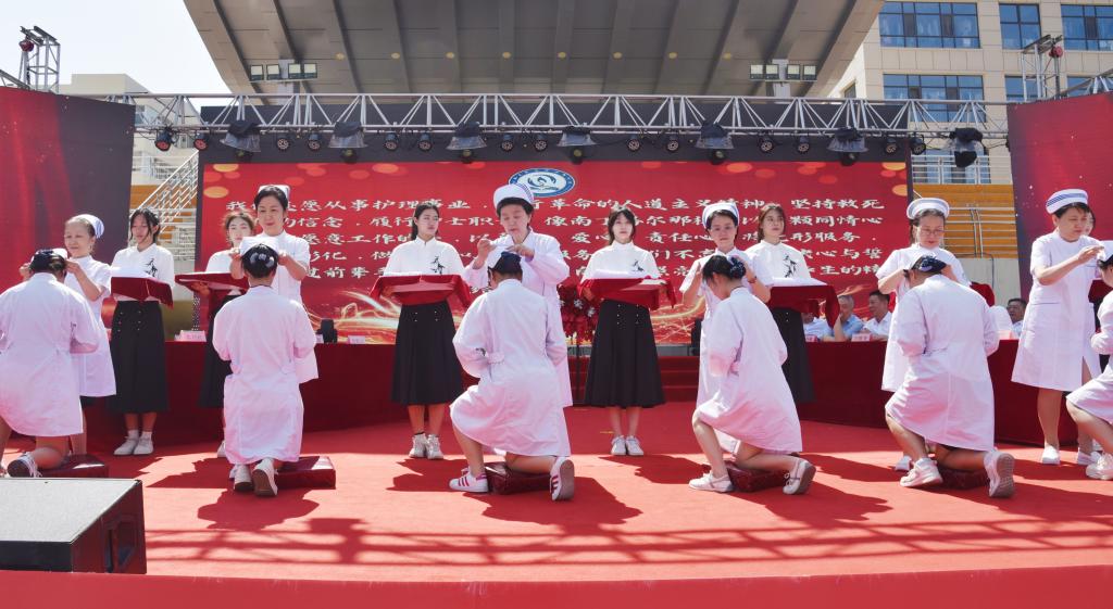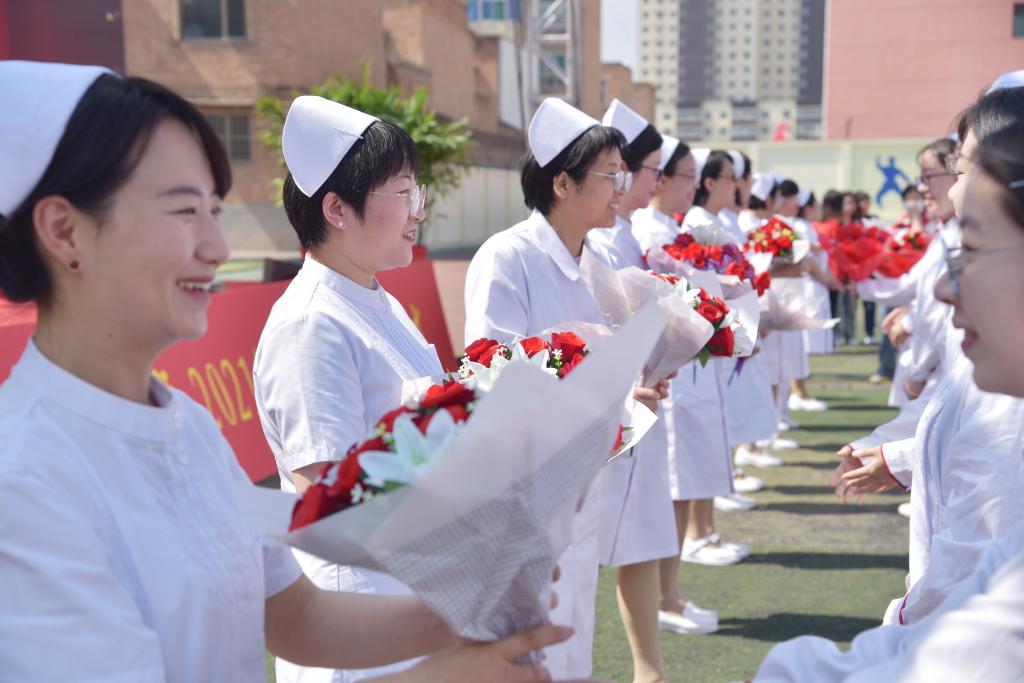 首先,孟小平院长致辞,向参加仪式的各位专家、领导表示热烈的欢迎和衷心的感谢,向长期辛勤耕耘在教学科研一线的护理教师致以节日的问候和崇高的敬意,向护理专业的同学们寄予深切的期望和节日的祝贺,并深情回顾了beat365百年护理教育的发展历程和取得的辉煌成就。孟小平院长对同学们提出三点希望:一是坚定信念,厚植家国情怀。热爱护理专业,坚定职业信仰,以南丁格尔为榜样,尽己所能,服务社会,自觉把个人的小我融入祖国和人民的大我之中,承担起新时代白衣天使的责任。二是锤炼品格,践行仁爱精神。牢记“仁术爱仁、精益求精”的校训精神,用心对待每一位病患,努力锤炼社会公德、职业道德和个人品德,在平凡和细微之处彰显医者大爱。三是潜心钻研,练就过硬本领。要自觉与时代发展同步,主动适应护理行业新发展、群众健康服务新需求、健康产业发展新要求,夯实专业理论知识,练就精湛护理技术,为健康中国、健康山西建设作出新的更大贡献。