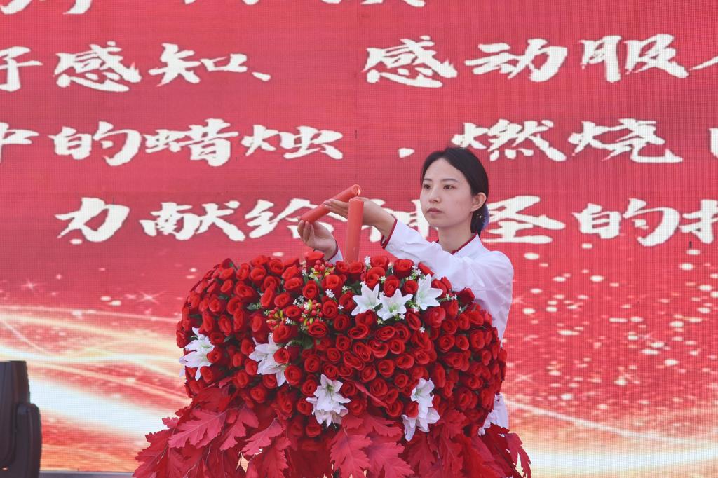随后,护理前辈崔芙蓉教授点燃象征生命之光的火种,护生代表取火种、传递火种。护理前辈和护理学系老师为新进教师及2021级全体护生授戴象征着圣洁天使的燕尾帽,护理学系副主任周雪带领全体护生庄严宣誓,齐声高唱《中国护士之歌》。