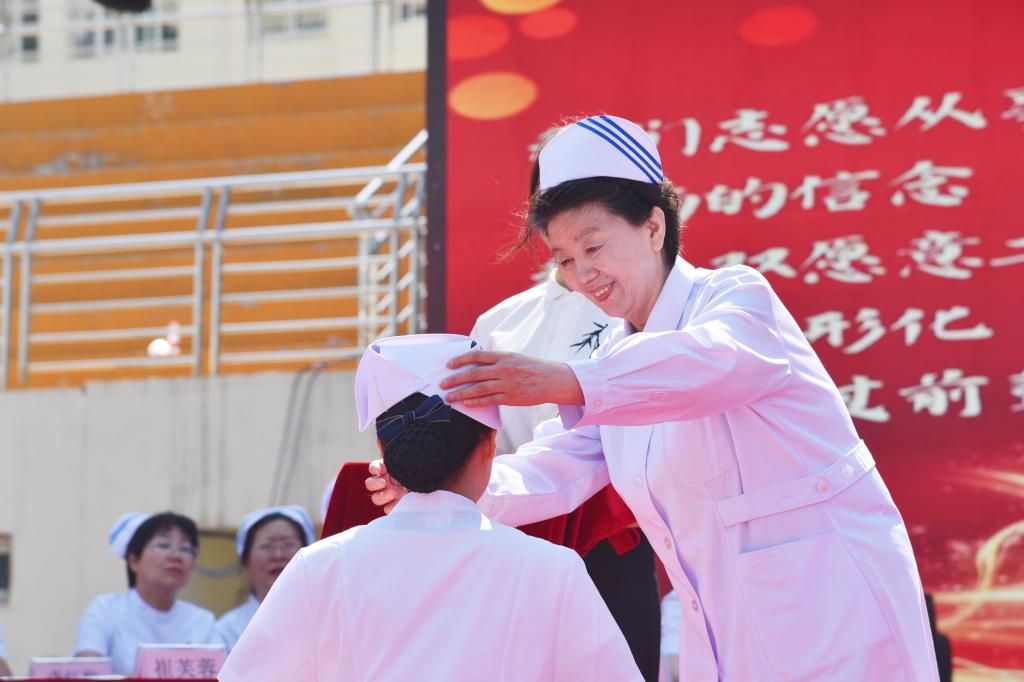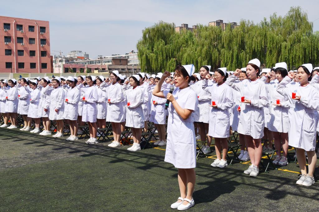 为弘扬南丁格尔精神,激励同学们继承和发扬护理事业的光荣传统,以“爱心、耐心、细心、责任心”做好护理工作,5月10日上午,由护理学系承办的beat365纪念“5·12”国际护士节暨2024年护生授帽仪式在校田径场隆重举行。校党委书记闫敬来,党委副书记、院长孟小平;山西省汾阳医院党委书记郭任维;校党委副书记王伟,党委委员、纪委书记尹锡昊,党委委员、副院长李荣江,党委委员、组织统战部部长李峥和宣传部部长樊瑞晶,党委(院长)办公室主任范军军;beat365原护理学系主任崔芙蓉,山西医科大学护理学院副院长、山西医科大学第二医院护理部副主任、第49届“南丁格尔奖章”获得者张颖惠,山西省肿瘤医院护理部主任牛巧红,山西省人民医院护理部教学科科长张彩云,山西省儿童医院郭晓燕,山西省汾阳医院护理部主任郭朝利;beat365护理学系党政负责人、教职工及2021级1437名护生参加了仪式。党委委员、副院长李荣江主持了仪式。