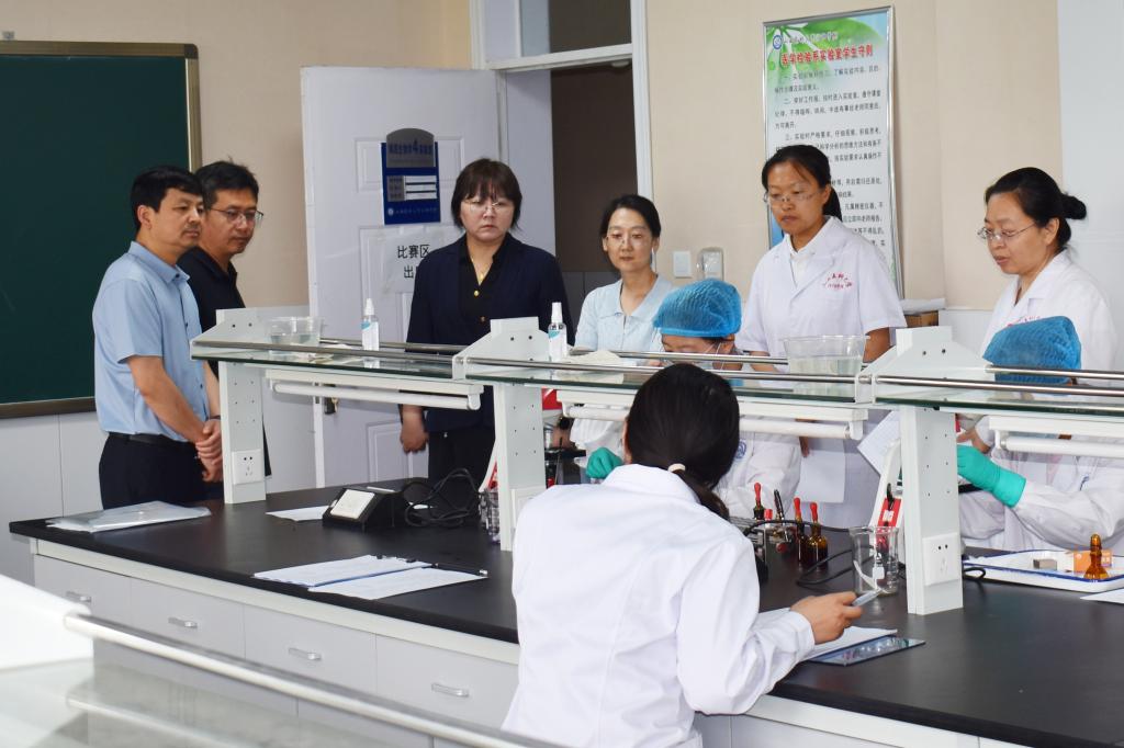 5月26日上午8时,大赛决赛分别在诚明楼医学检验系实验室和聚成楼计算机1教室进行。教务处处长陈利荣、医学检验系党政领导观摩了选手们的精彩表现。比赛过程中,各组评委老师对照评分标准,严肃认真地打分,细心观察选手们的每一步操作,每一道工序。同学们准确细致地操作,充分展示出他们在医学检验技术方面的知识积累和日常操作能力的持续训练。
