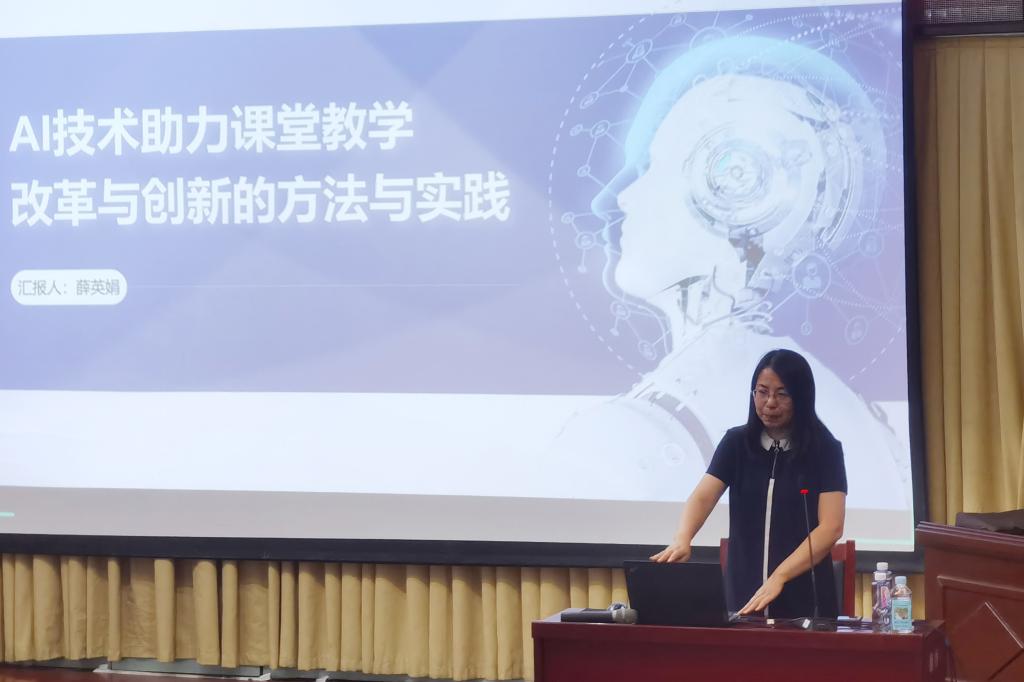 薛英娟副教授以“AI技术助力课堂教学改革与创新”为主题,分享了自己在AI应用、发展前沿、智能教学等方面的诸多宝贵经验和做法,并具体展示了AI工具如何操作与应用。