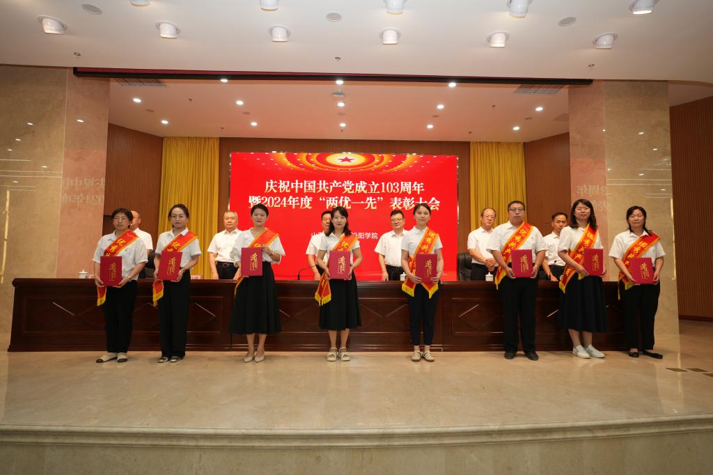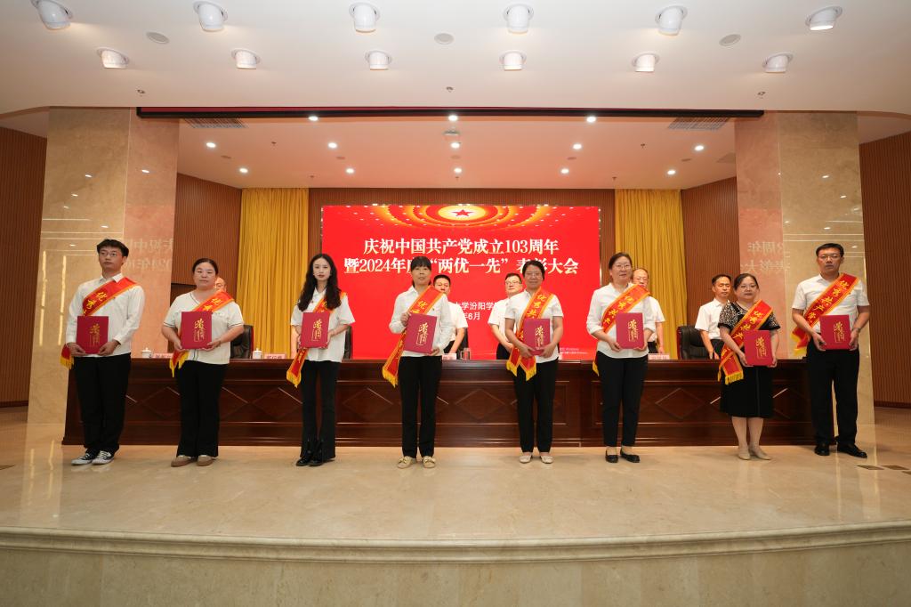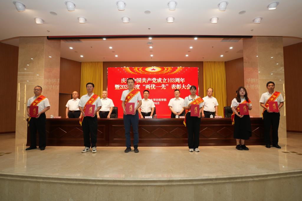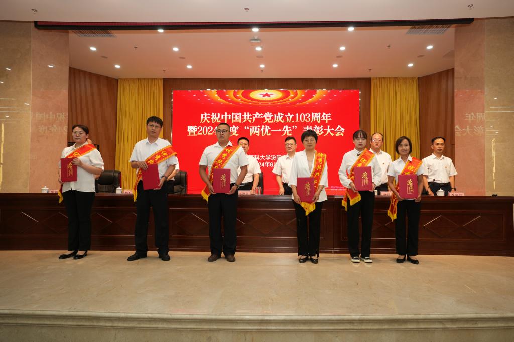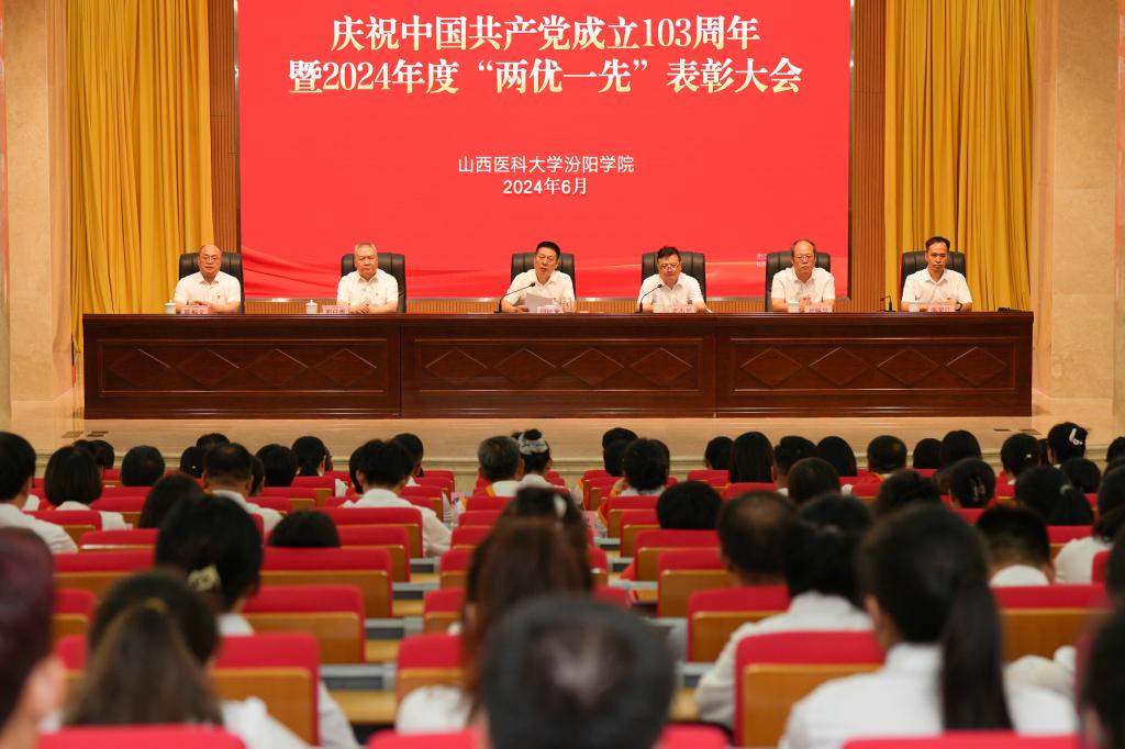 为庆祝中国共产党成立103周年,扎实推进党纪学习教育,6月28日下午,beat365召开庆祝中国共产党成立103周年暨2024年度“两优一先”表彰大会。全体在校校领导、汾阳医院党委书记郭任维、学校中层副处级以上干部、受表彰的集体和个人参加了会议。会议由党委副书记、院长孟小平主持。