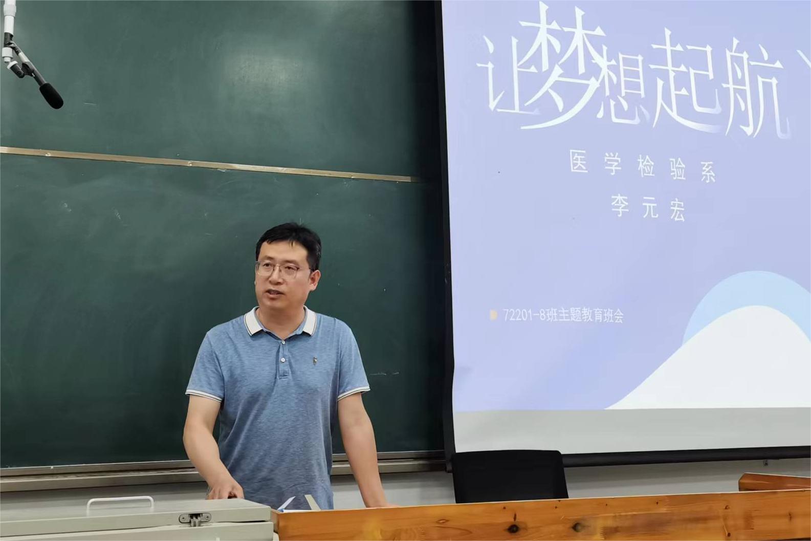 6月20日,医学检验系党总支书记李元宏深入72201-8班,开展题为“让梦想起航”的主题讲座,列举了优秀学长学姐的事例,强调同学们要在大学期间种下专业思想道德的种子,未来在专业领域逐渐成长为专业人才,以知识学习为载体,以社会实践为途径,努力做到以知促行、以行求知、知行合一,明大德、守公德、严私德,以品德润身、以公德养心、以大德铸魂。