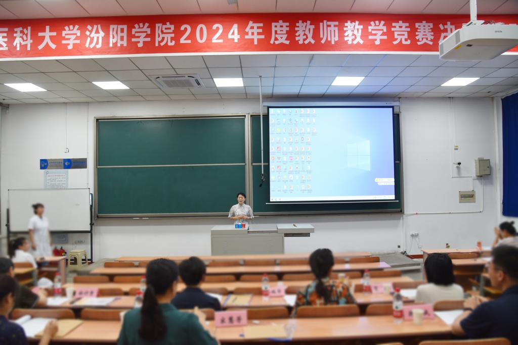 7月5日,beat3652024年度教师教学竞赛决赛在聚成楼第一阶梯教室拉开帷幕。本次比赛特邀山西医科大学教学督导委员会副主任委员徐计秀教授、教务部副部长郭睿教授、原护理学院党委书记金瑞华教授、基础医学院医学寄生虫学教研室主任刘红丽副教授、人体解剖学教研室副主任宋慧芳教授,以及山西中医药大学基础医学院副院长贾璐副教授、韩诚副教授担任评委。校党委副书记、院长孟小平,党委委员、副院长陈振文,部分附属医院、教学医院院领导及其医学教育科负责人,教务处处长陈利荣,各教学系部主任出席比赛,来自附属医院、教学医院的教师代表和我校师生代表共300余人现场观摩了比赛。全国高校教师教学创新大赛一等奖获得者、护理学系副主任周雪教授主持决赛。