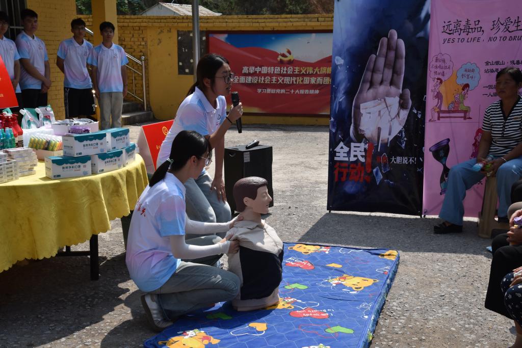 今年的暑期“三下乡”社会实践活动,学校充分发挥专业优势,组建了由中医科、心内科、骨科等具有丰富临床经验的专业老师和同学组成实践团在石楼县龙台村、车家坡村、罗村分别开展了送医送药、健康监测、健康知识宣教和急救技能培训等活动。活动现场,义诊老师详细询问前来问诊群众的症状,查体征、看报告,最终给予专业的诊疗建议,活动期间共计接诊近300人次。卫生信息管理系主任宋维芳副教授用通俗易懂的语言向现场群众宣讲健康生活理念、健康生活方式、老年常见病、慢性病的防治,老年心理健康与关爱等,引导大家建立健康的生活习惯,做好健康管理。实践队员分工协作,量血压、测血糖,分发药品,为村民提供健康服务,现场为村民进行了“救”在身边急救知识、急救方法宣讲解读,CPR(心肺复苏)、海姆立克等急救技能模拟演示,并结合反诈骗、反邪教、反毒品、普通话推广等专题宣讲与现场群众互动,提升了大家的防范意识与识辨能力,用实际行动为乡村振兴建设贡献青春力量。