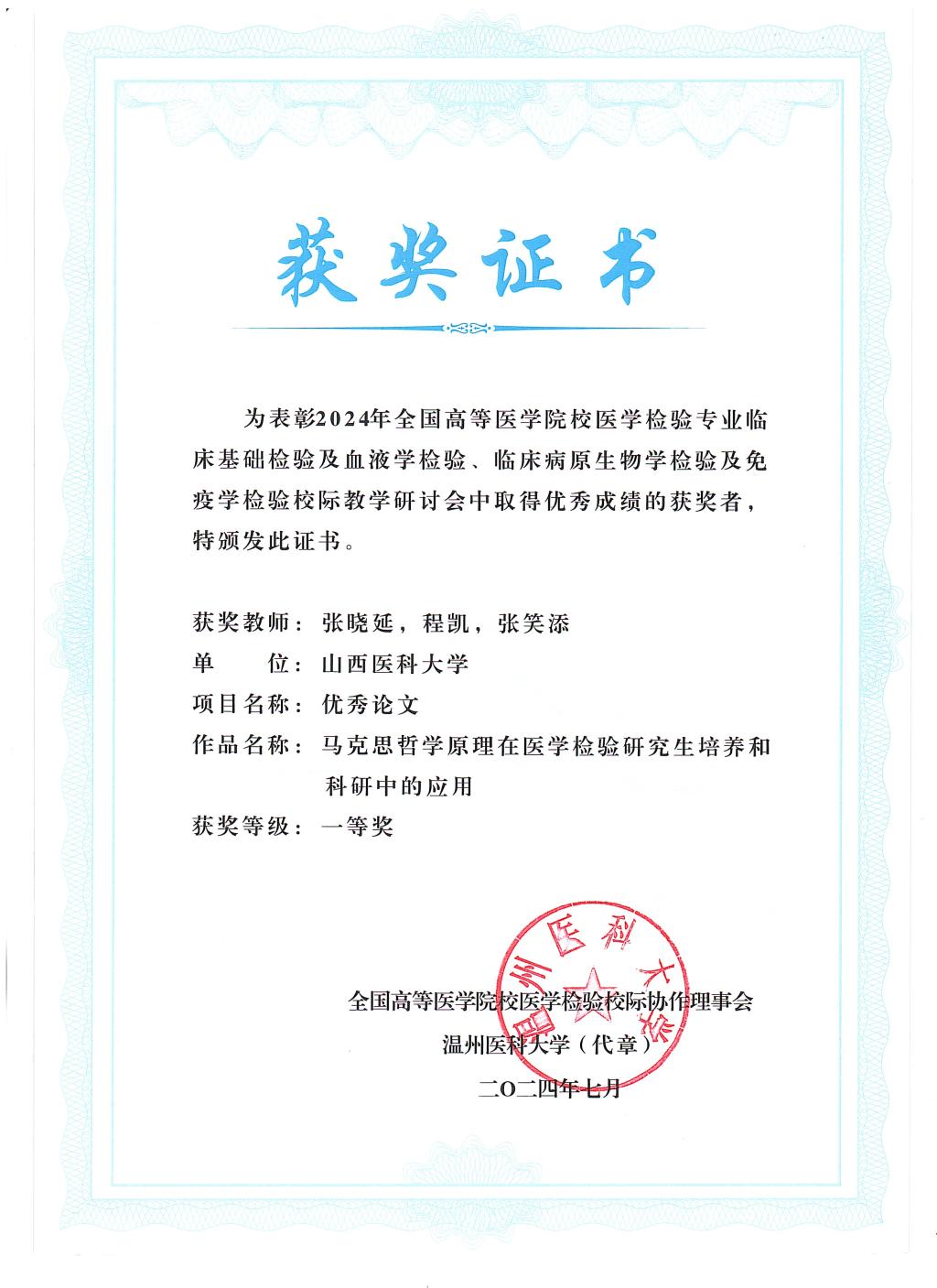 本次学习交流和获奖,不仅彰显了beat365医学检验专业办学实力和成效,也深化了beat365与全国高等医学院校之间的交流与协作,推进了beat365医学检验技术专业的教育教学改革,提升了人才培养质量和专业课程教研水平。