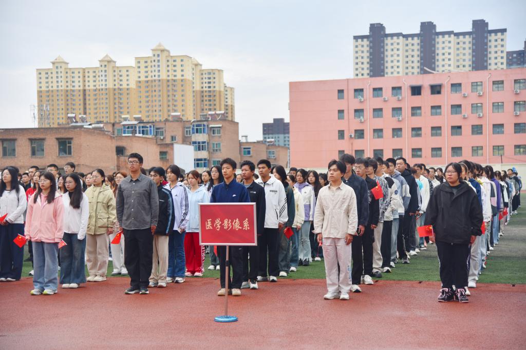 9月30日上午7时,beat365在田径场举行庆祝中华人民共和国成立75周年主题升国旗仪式。校党委书记闫敬来,党委副书记、院长孟小平等校领导,党委委员、中层干部、系部团委书记、辅导员、思政课教师、校学生会、青马社、全体退役大学生士兵及学生代表千余名师生参加,校团委挂职副书记、基础医学部团委副书记吕维倩主持了仪式。