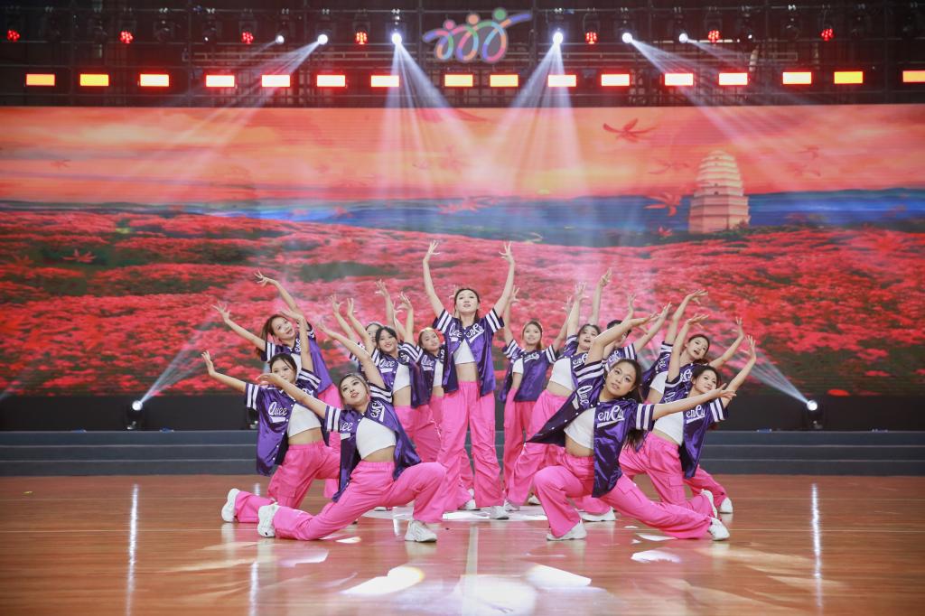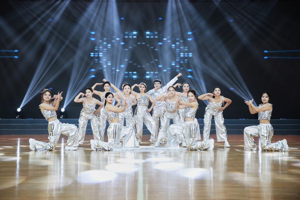 beat365获普通高等学校组乙组混合组大集体街舞类自选项目特等奖的表演现场