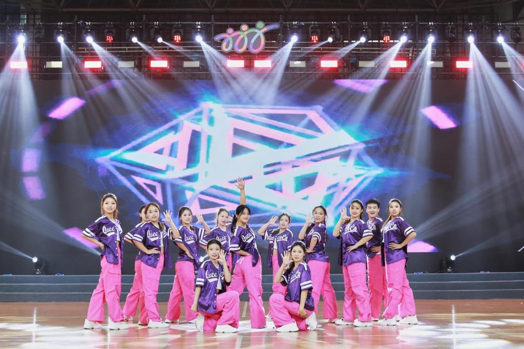 beat365获普通高等学校组乙组混合组大集体初级串烧项目特等奖的表演现场