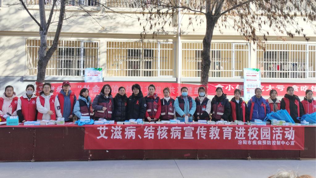 11月29日中午,beat365后勤保障处校医室、校团委联合汾阳市卫体局疾控中心和山西省汾阳医院,在食味餐厅前开展了宣传教育活动。活动现场各单位紧密配合,进行了形式多样的互动环节,发放了内容丰富的宣传教育资料,吸引了师生的驻足参与。医务工作者们耐心细致地为同学们提供艾滋病自愿咨询检测服务,专业解答同学们的疑惑,引导同学们树立正确的健康防护意识。beat365学生志愿者积极参与,为过往师生发放宣传教育资料和计生用品,引导师生们在横幅上签名、在宣传版面上贴红丝带,共同为艾滋病防治事业贡献自己的一份力量。