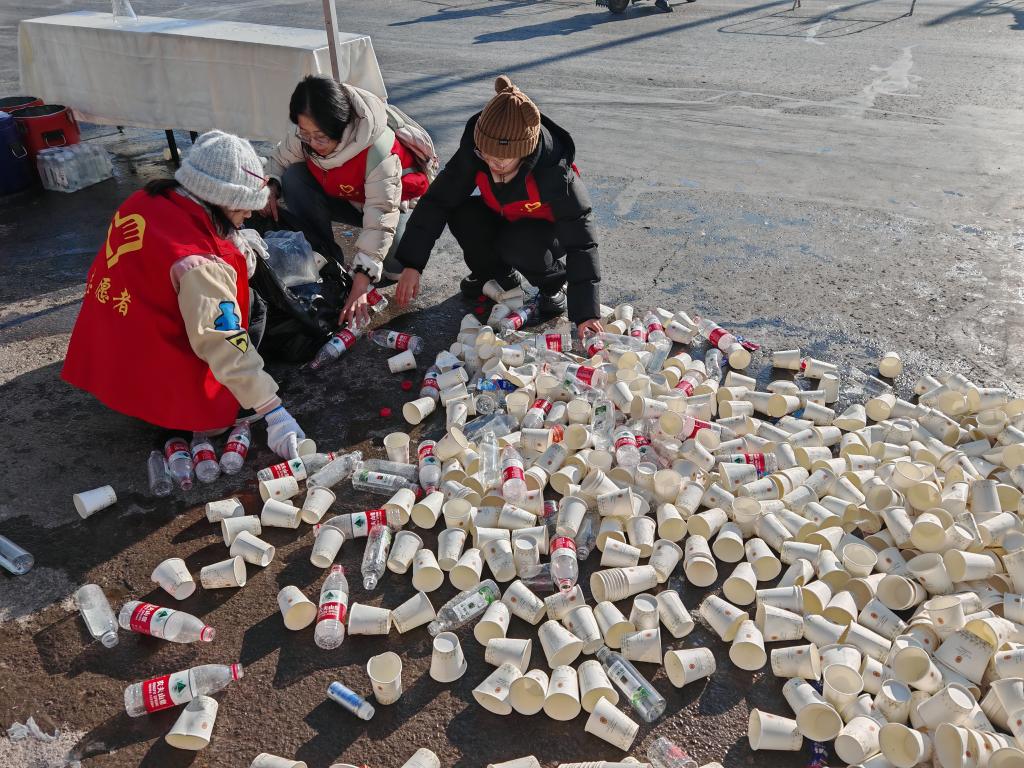 比赛结束后,同学们及时清理赛道上的垃圾,确保道路的清洁畅通。