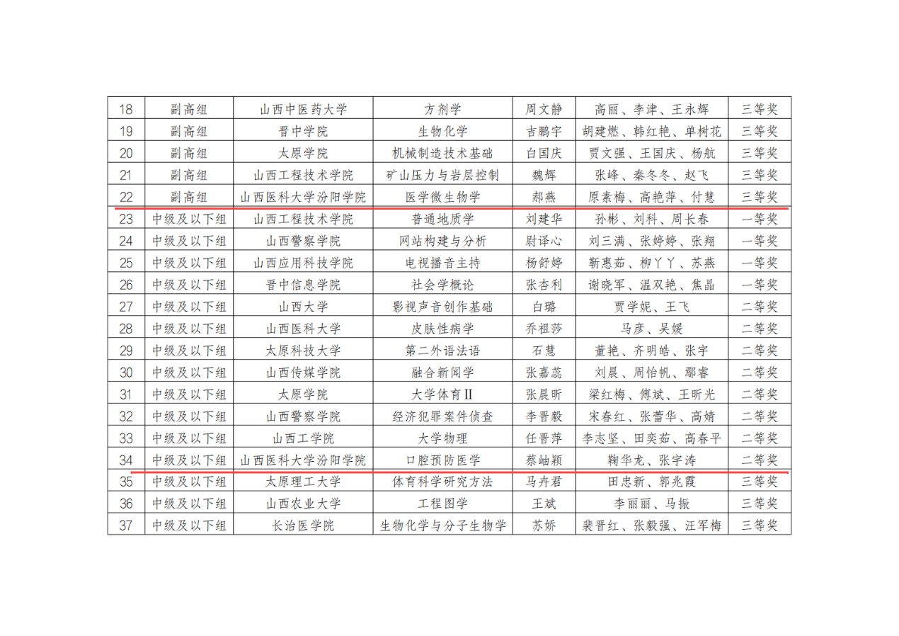 近日,山西省教育厅公布了2024年山西省普通高等学校课程思政教学设计大赛暨第五届全国高校教师教学创新大赛山西赛区课程思政组别比赛结果,beat365临床医学系蔡岫颖教师团队荣获中级及以下组二等奖,医学检验系郝燕教师团队荣获副高组三等奖。