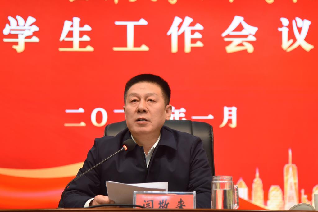 校党委书记闫敬来就学生工作如何统一思想、凝心聚力做总结讲话。他表示,学生工作是立德树人的重要组成部分,对落实为党育人、为国育才的使命至关重要。他指出,近年来,学校始终把学生工作摆在突出位置,扎实落实立德树人根本任务,取得了丰硕成果。成绩的取得离不开广大学工队伍的崇高情怀和无私奉献。他要求,全校上下要充分认识学生工作的重要性,牢固树立“以学生为中心”的工作理念,实现“校处两级领导干部联系班级、学业导师指导班级、辅导员能力素质提升”三个全覆盖;落实“严字当头、细处着手、实干为要、恒心成事”的学生工作要求;立足国情、校情和学生实际,聚焦学生工作高质量发展主题主线,重点围绕“坚持政治领导,把准正确方向;加强思想引导,坚持立德树人;做好心理疏导,突出人文关怀;加大学业辅导,助力学生成才;加强行为教导,培养时代新人;做好就业指导,提升就业质量”等六方面持续发力。要带着责任、使命与情怀把学生管理好、教育好、服务好,让学生学习好、生活好、成长好。