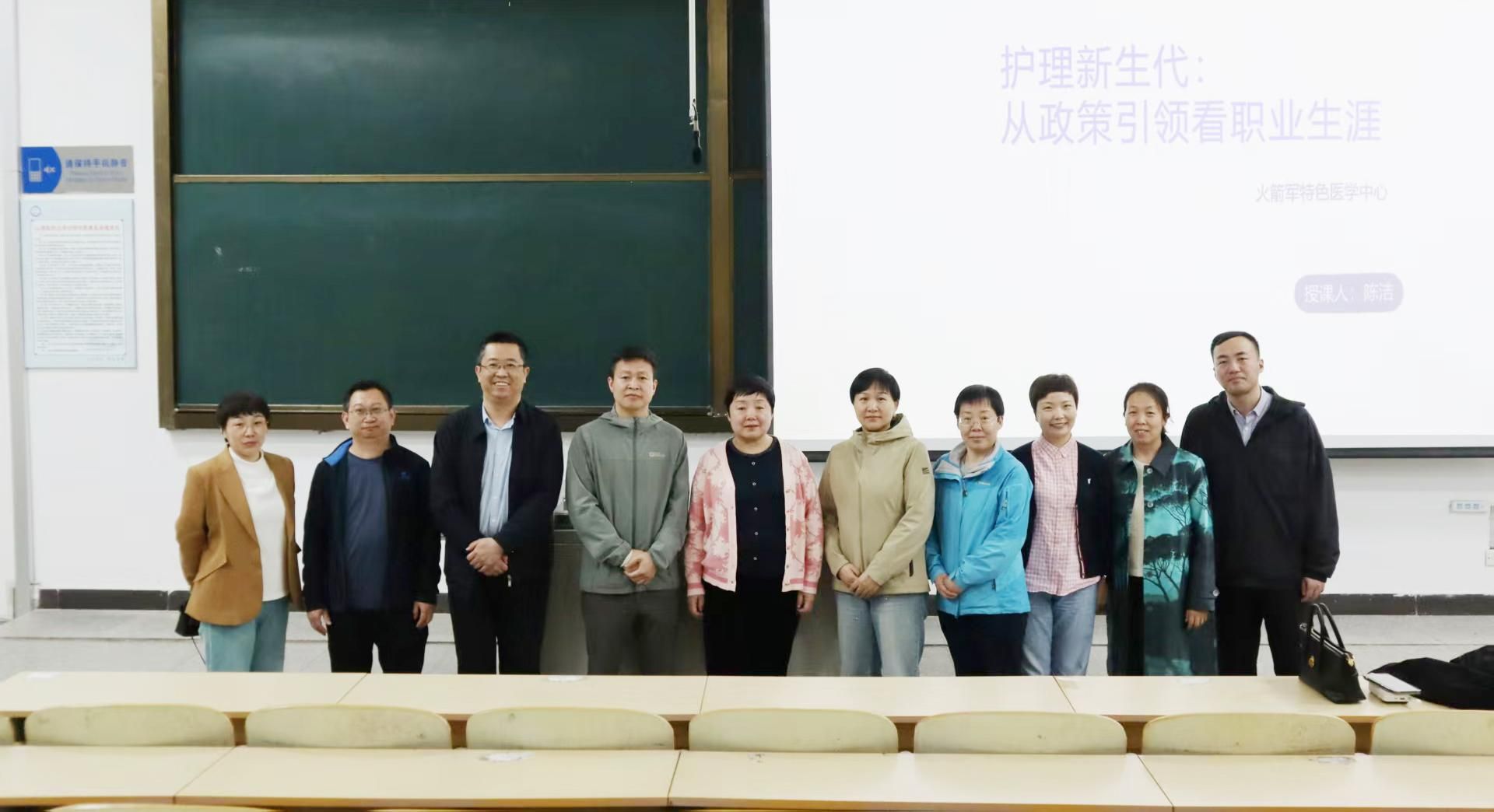 为帮助大三学子准确把握政策机遇、科学规划职业发展,4月18日,护理学系在第三阶梯教学楼一教室成功举办了主题为“护理新生代:从政策引领看职业生涯”的专题讲座。本次讲座特邀火箭军特色医学中心主任护师、硕士生导师陈洁,呼吸科护士长、副主任护师白洁,胃食管外科护士长、副主任护师宋庆担任主讲嘉宾。火箭军特色医学中心护理部主任王承竹、骨科护士长张秋红、肝胆外科护士长张建国,beat365教务处副处长王艳锋、护理学系党总支副书记申涛、教务处实践教学管理科副科长郭峥、护理学系分团委书记康智芳等莅临现场。讲座吸引了众多学生参与。